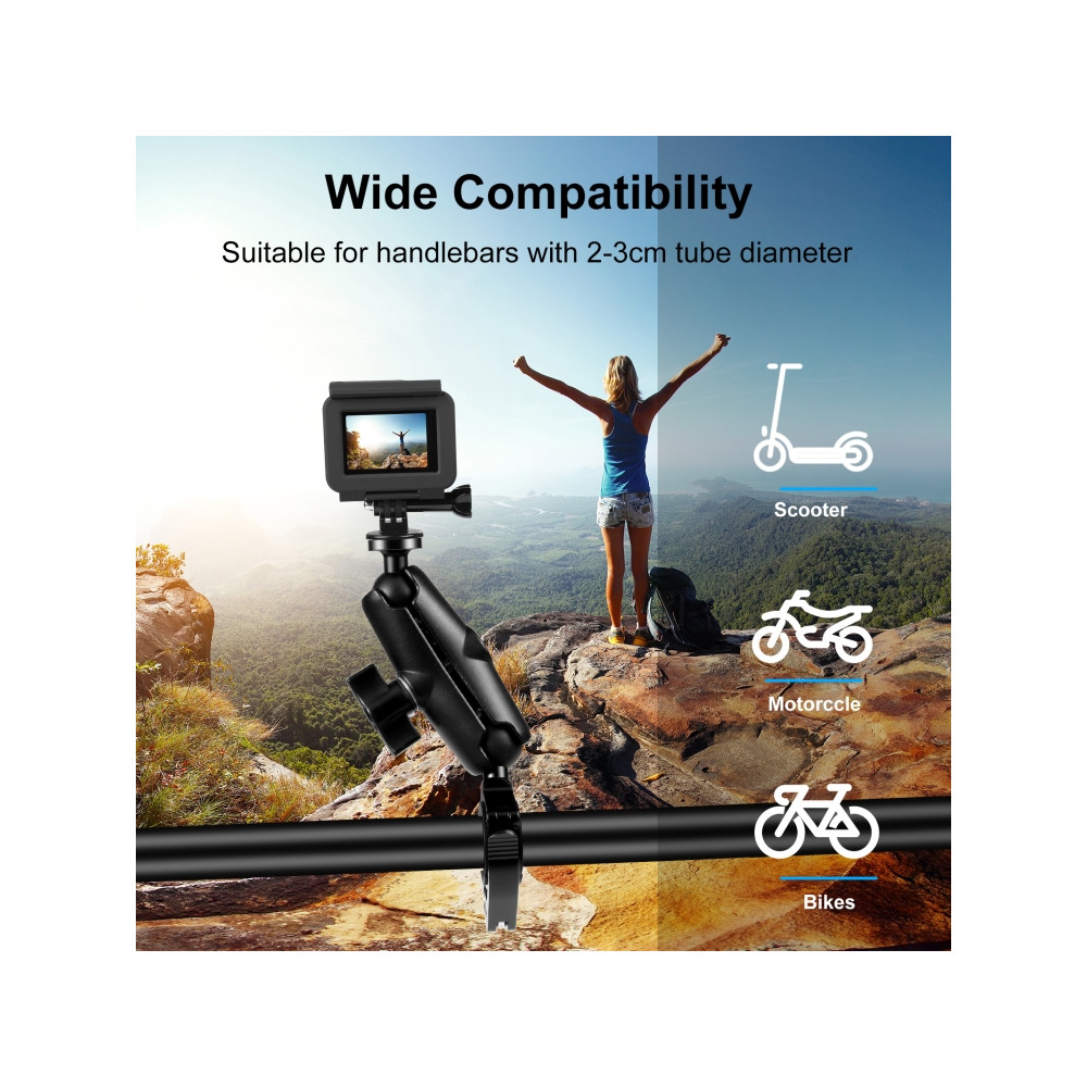 Jedná se o robustní hliníkový držák na řidítka kola, motorky, pro GoPro, Insta360, DJI a další...