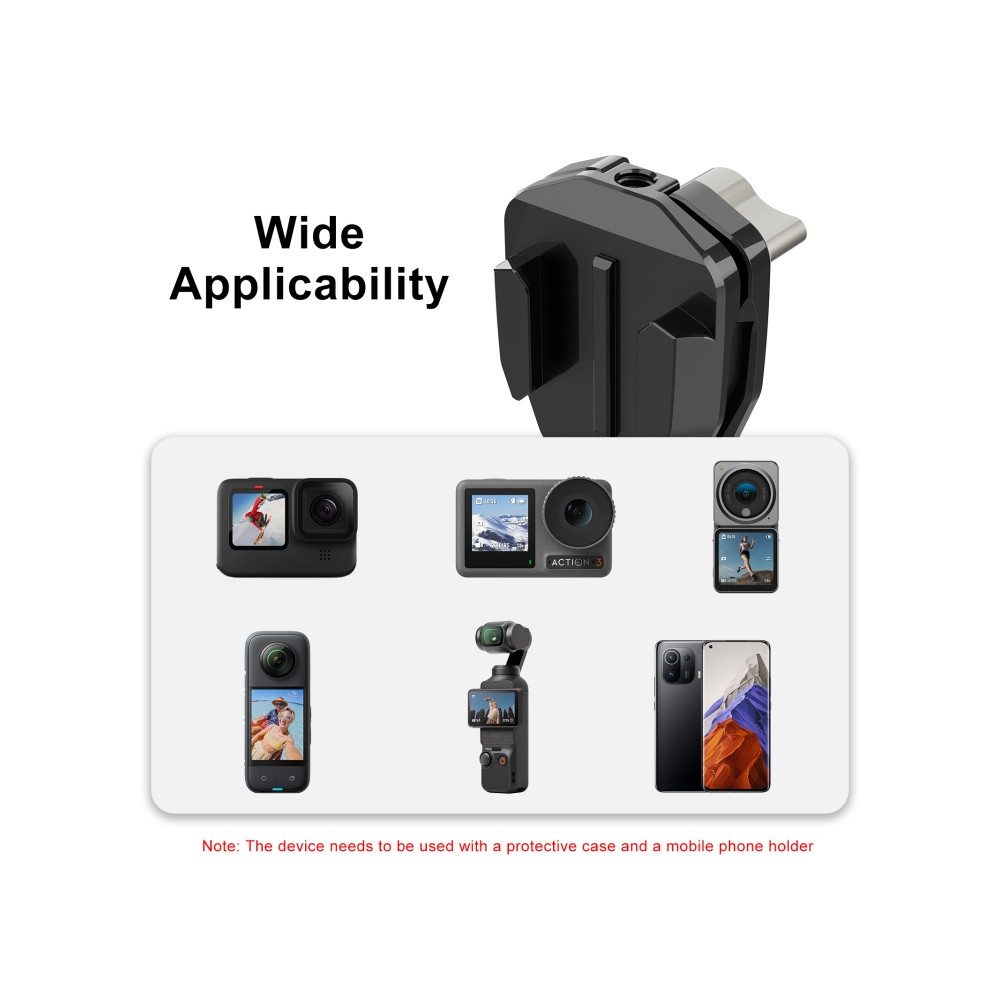 Speciální design pro motocyklová čelní skla: Navržen speciálně pro instalaci sportovních a panoramatických kamer na čelní skla motocyklů. Jeho kompaktní a přenosný design umožňuje snadné přenášení a použití.