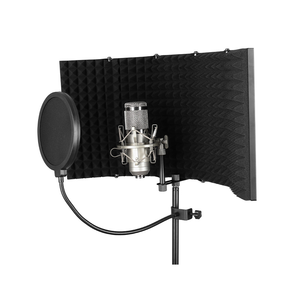 Profesionální akustická izolace rádiového mikrofonu (AI-3 60x28x4cm), stativ a ani mikrofon není součástí.