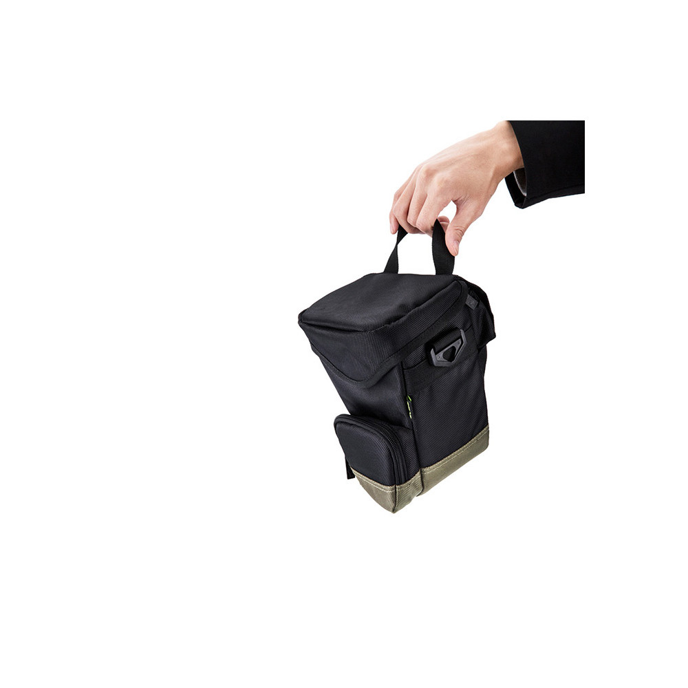 Ideální pro uložení a přepravu fotoaparátu s objektivem a příslušenstvím; polyesterová tkanina odolná proti povětrnostním vlivům; vnitřní polstrování pro odpružení; vnitřní a přední kapsy na zip pro příslušenství.