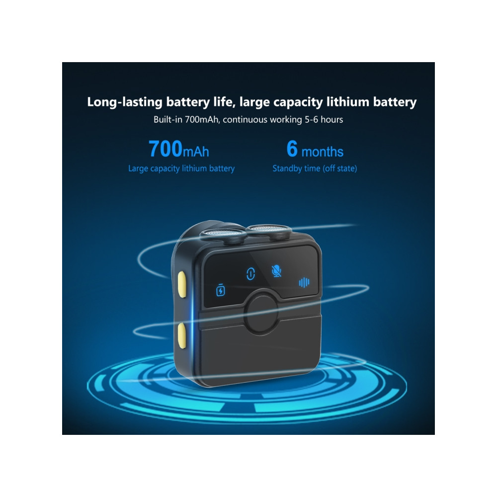 Dlouhá výdrž baterie: Mikrofon umožňuje nepřetržité nahrávání po dobu 5–6 hodin na jedno nabití, což je ideální pro dlouhé natáčecí dny nebo rozsáhlé projekty. Nabíjecí pouzdro, které je součástí balení, poskytuje další pohodlí a flexibilitu.