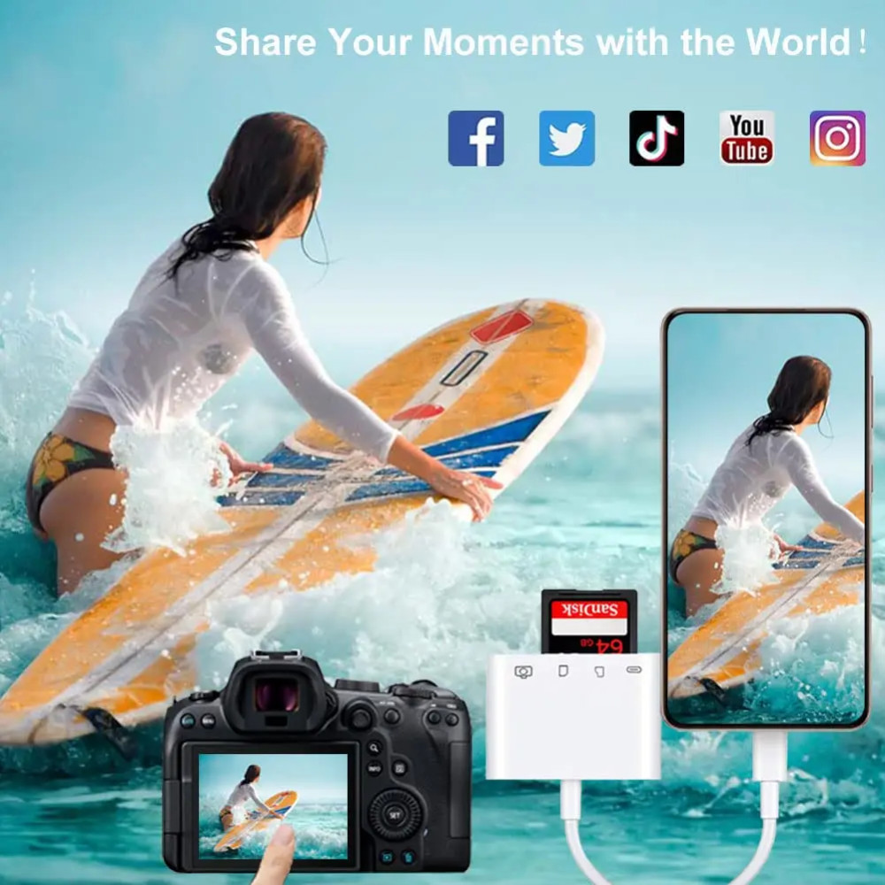 Podpora více formátů: Adaptér podporuje čtení a zápis dat z SD a TF karet, stejně jako z dalších běžných paměťových karet. Díky dvojitým slotům pro karty můžete přenášet data mezi kartami současně, což eliminuje potřebu opakovaného připojování a odpojování.