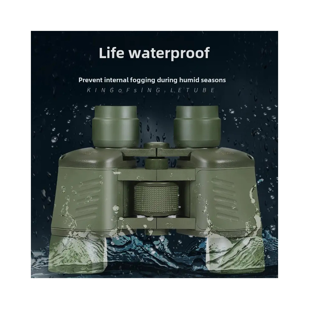 Binokulární dalekohled se zoomem 50 x 50 + pouzdro. Použit hranol BAK4, očnice 18 mm, objektiv 37 mm, voděodolný s protiskluzovým povrchem.