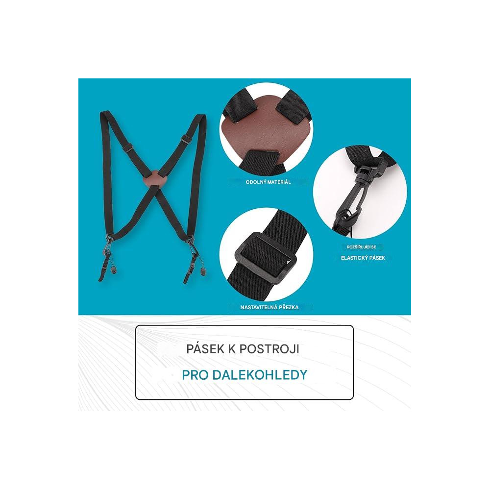 Pohodlí a úspora práce: Díky svému křížovému tvaru efektivně rozptyluje zátěž a umožňuje krku a ramenům rovnoměrněji nést tlak. Tím snižuje únavu a nepohodlí způsobené dlouhodobým nošením dalekohledu. Tento design vám umožní mít volné ruce pro jiné aktivity, zatímco váš dalekohled zůstane bezpečně na místě.
