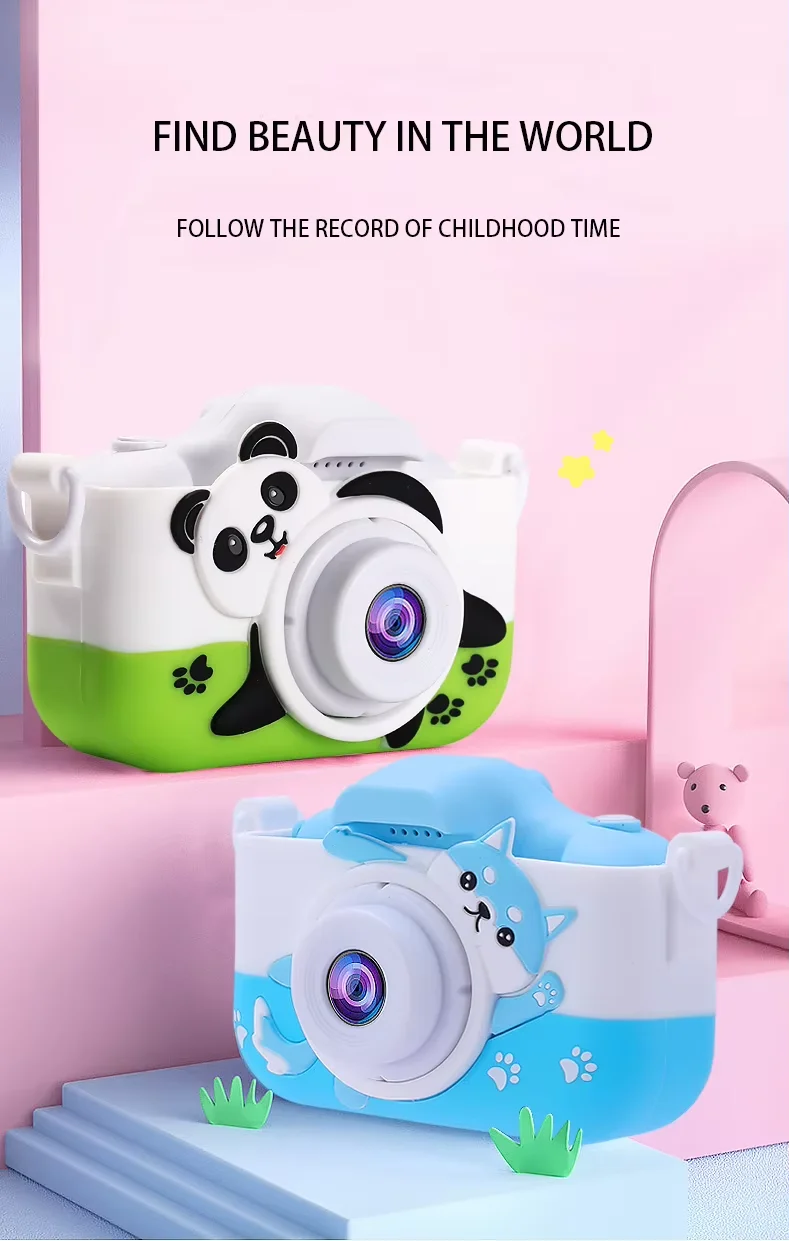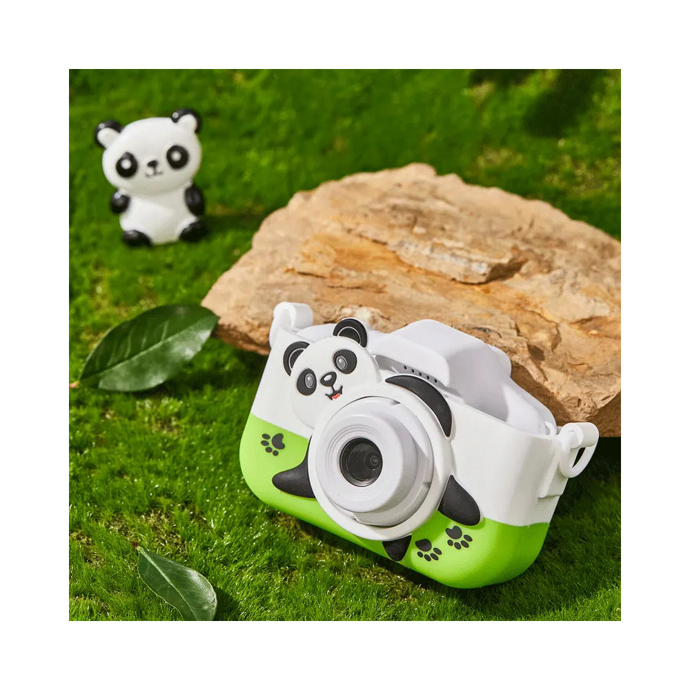 Mini Dětský Digitální Fotoaparát obrazovka o velikosti 2,0 Palce. Motiv je z Panda, navíc k fotoaparátu je silikonové Pouzdro . Tento model je v ZELENO BÍLÉ BARVĚ.