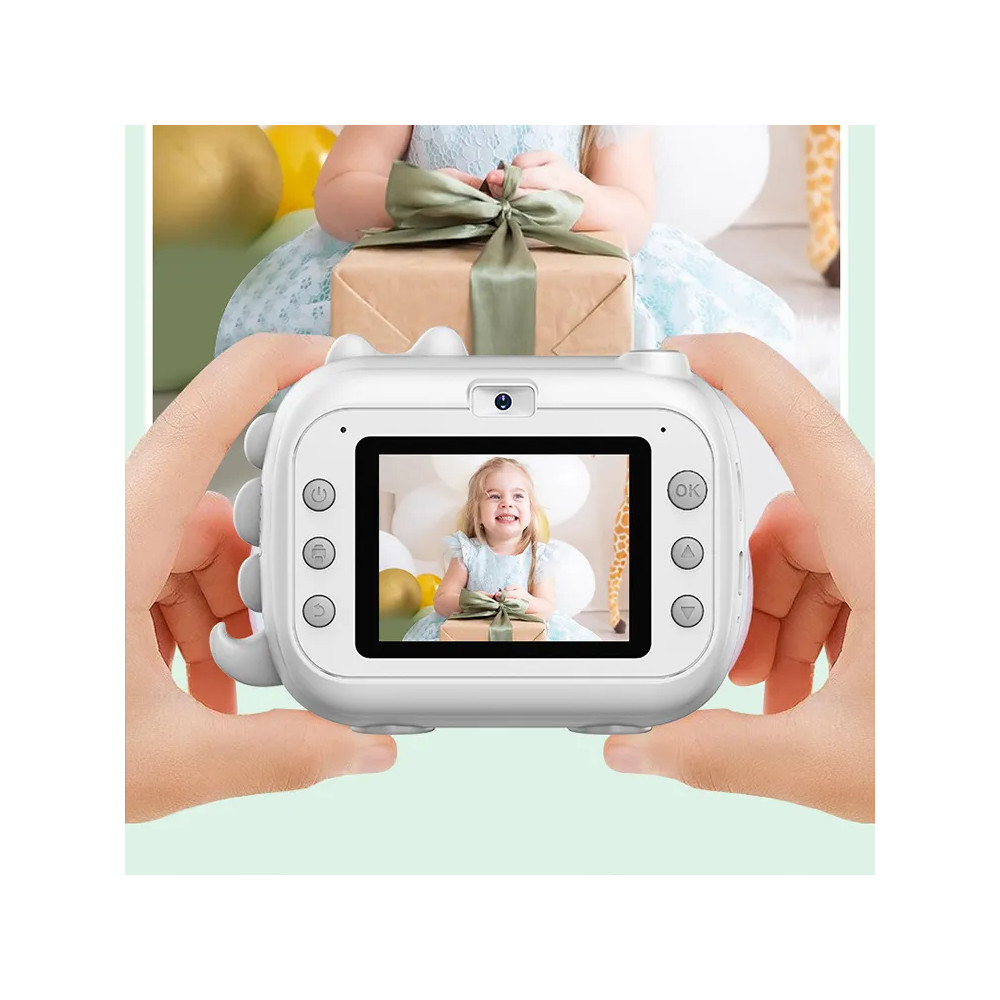 Dětský fotoaparát s termotiskárnou pro okamžitý tisk. Barva bílá. Možnost nahrávání videa. Hry.S...
