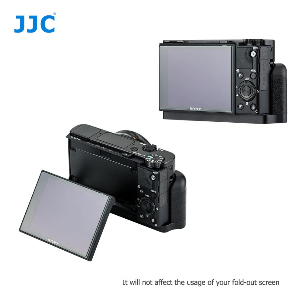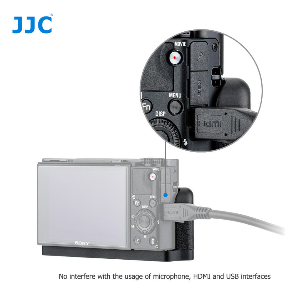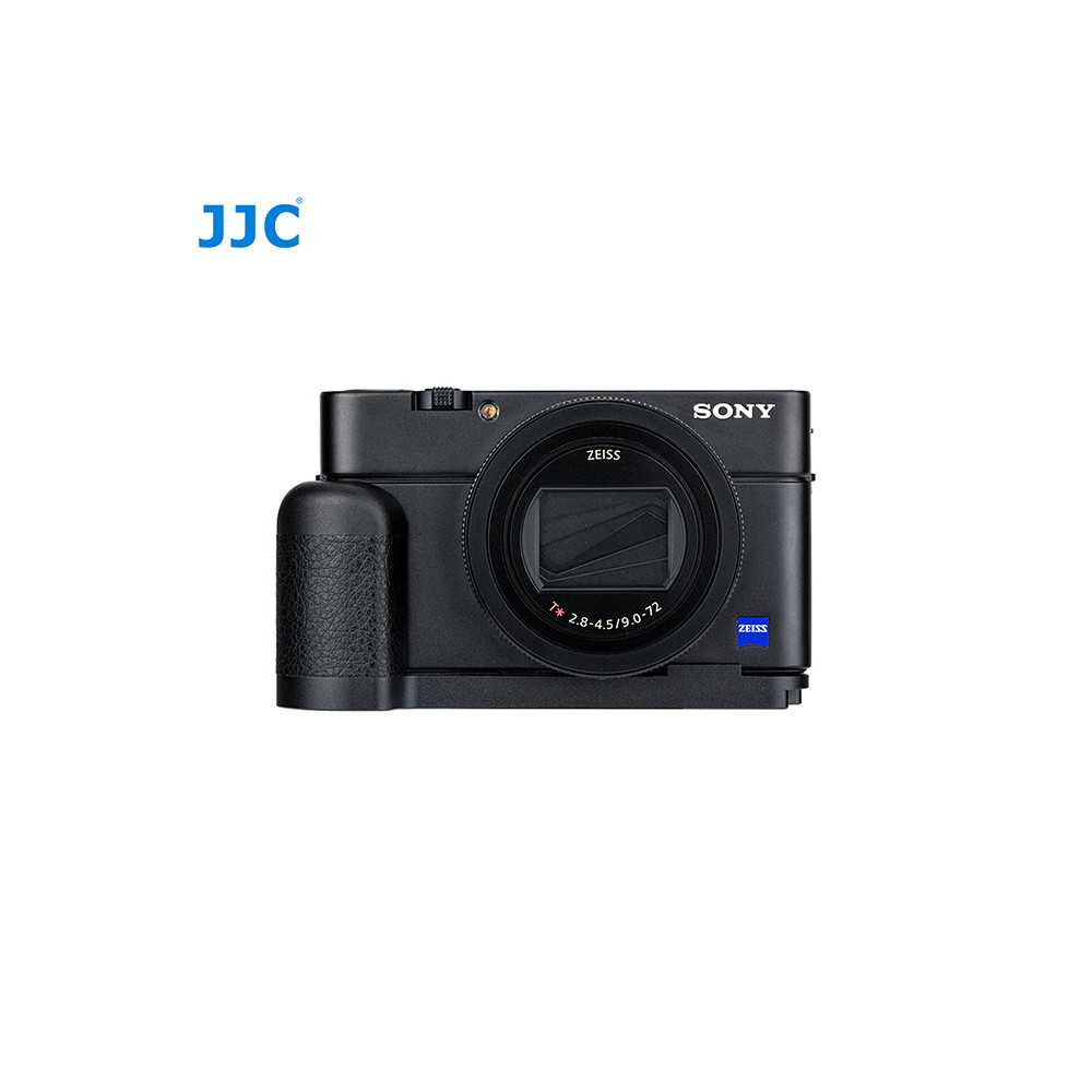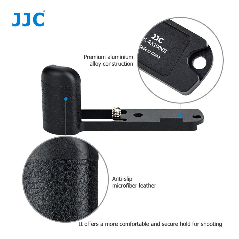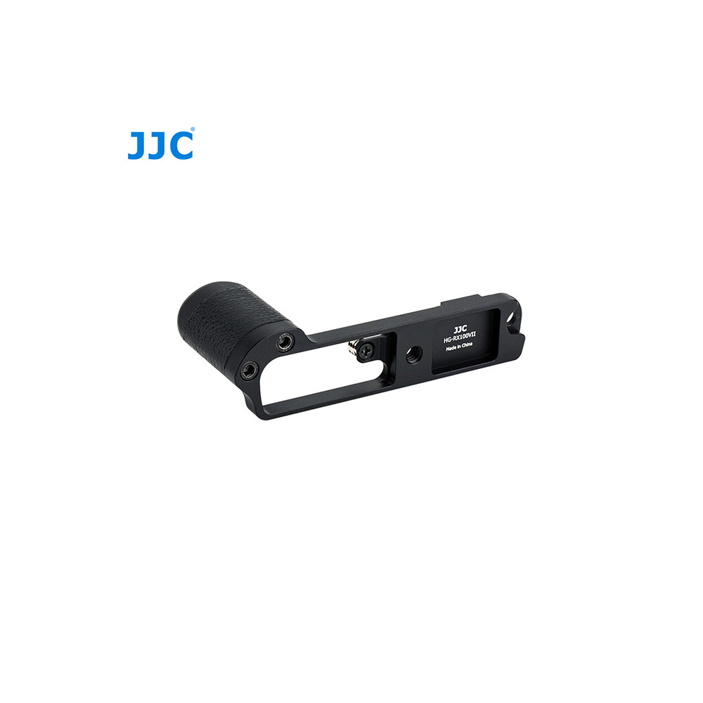 Držák JJC HG-RX100VII. Je vyroben z prvotřídní hliníkové slitiny, která je robustní a odolná. Tato kovová konstrukce je také dokonalým spojením s tělem fotoaparátu.Rukojeť je protiskluzová a poskytuje vám příjemný pocit z ruky díky kůži z mikrovlákna na jejím povrchu. Po připojení rukojeti k fotoaparátu si užijete pohodlnější a bezpečnější držení při fotografování. Velký otvor ve spodní části umožňuje vyjmout baterii, aniž byste museli sundat celou rukojeť. Dodává se také s otvorem pro reproduktor pro snadný přístup k reproduktoru fotoaparátu. Ve spodní části rukojeti je navržena rychloupínací deska Arca Swiss Type, kterou můžete připevnit přímo na stativy Arca Swiss System.