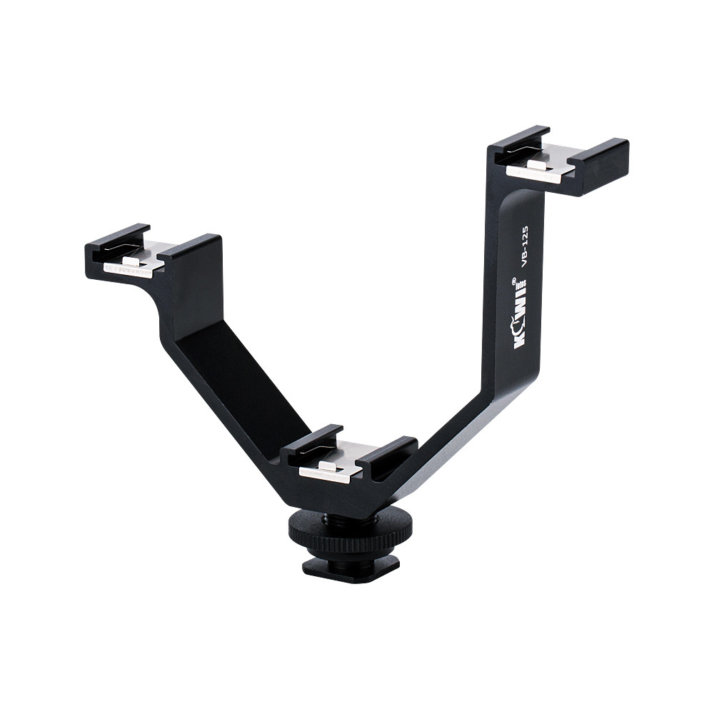 Trojitý držák V-Bracket řady KIWIFOTOS VB lze připevnit na studenou patici fotoaparátu a získat tak tři další držáky pro montáž světel, monitorů, mikrofonů a dalšího příslušenství. Trojitý držák V-Bracket se připojuje pomocí držáku studené patice nebo držáku 1/4"-20. Držák je vyroben z vysoce kvalitních materiálů ze slitiny hliníku. Díky střepům z nerezové oceli lze příslušenství připevnit stabilně. Navíc zajišťovací disk dokáže zajistit držák na místě a zabránit jeho otáčení během používání. K dispozici jsou tři velikosti: Šířka držáku je 4,13", 4,92" a 6,50".