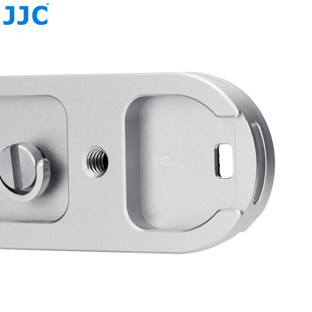 Hand grip JJC řady HG-XT50 je určen pro fotoaparáty FUJI. X-T50. Je vyroben z prvotřídní hliníkové slitiny, takže je pevný a odolný a zároveň dokonale ladí s tělem fotoaparátu. Oblast gripu je obalena prvotřídním měkkým silikonem, který zajišťuje bezpečné a pohodlné držení. Připevněním gripu k fotoaparátu získáte uvolněnější a bezpečnější držení během fotografování. Velký otvor na spodní straně umožňuje snadný přístup k baterii a paměťové kartě bez nutnosti sejmutí gripu. Navíc je vybaven otvorem pro reproduktor, který umožňuje pohodlný přístup k reproduktoru fotoaparátu. Spodní část ručního gripu využívá konstrukci rychloupínací destičky typu Arca Swiss, která umožňuje přímou montáž na stativy systému Arca Swiss. Lze ji také připevnit k jiným stativům nebo zařízením se stativovým konektorem 1/4"-20. Konstrukce se zkosením zajišťuje, že rukojeť nepřekáží při používání výklopné obrazovky. Ruční rukojeť je navíc vybavena otvorem pro připojení zápěstního řemínku, jako je například JJC HS-ML1M (prodává se samostatně).