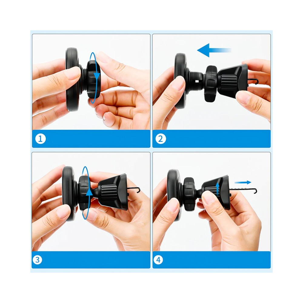 VRIG MG-07 je držák telefonu do auta s magnetickým držákem pro bezpečné a pohodlné uchycení zařízení. Celá věc se zacvakne do větracího otvoru pomocí jednoho ze dvou adaptérů: montážní konzoly s nastavitelným háčkem nebo klipové svorky s přídavnou podpěrou. Malá kulová hlava umožňuje volně otáčet montážní deskou s telefonem.