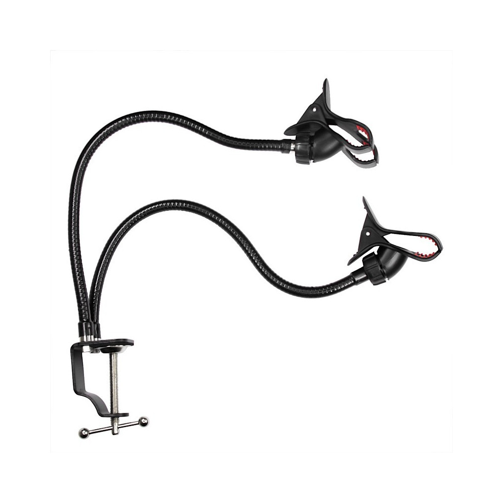 Dvojitý držák telefonu s ohebnými rameny s úchytem na stlůl
