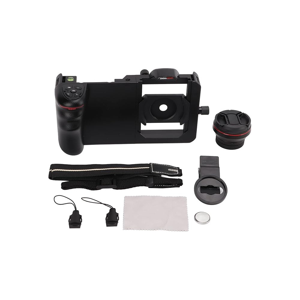 Tvarově přesná kompletní klece: Naše videosouprava je vyrobena z lehkého, ale odolného plastu, který zajišťuje dlouhou životnost a spolehlivost. Zabudované gumové podložky na spodní straně klece chrání váš smartphone před poškrábáním a udržují jej pevně na místě. Kulatý design klece poskytuje kompletní ochranu, což znamená, že váš telefon je v bezpečí i při náročném použití.