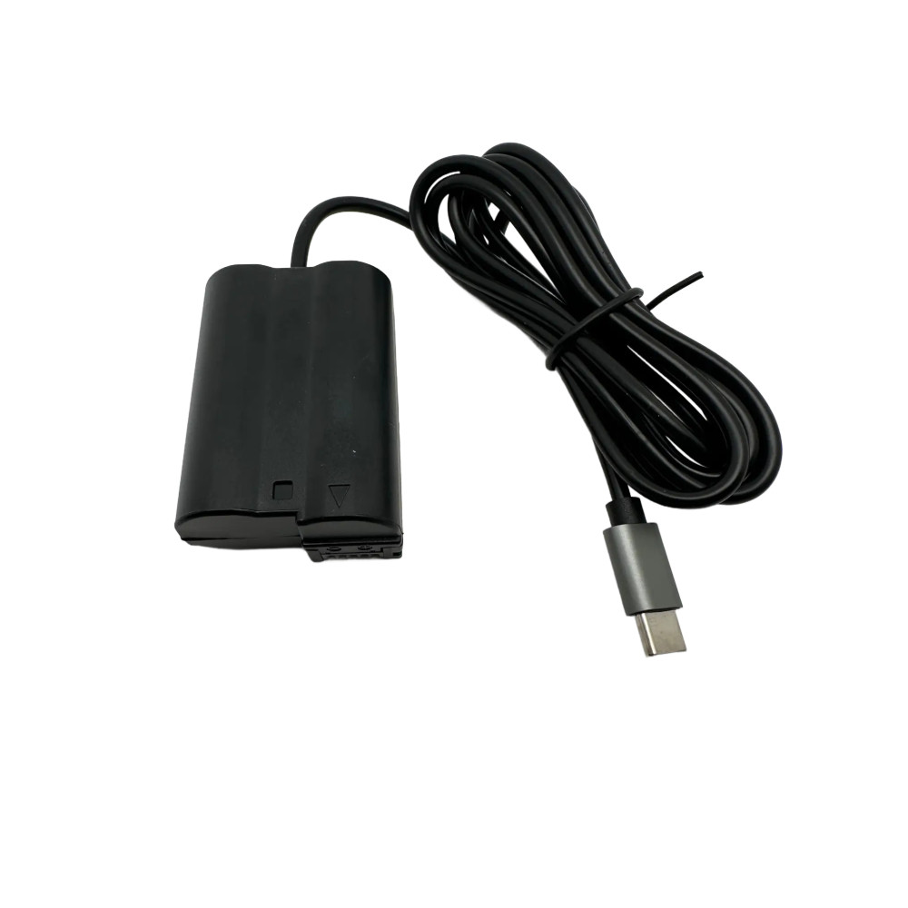 Dummy baterie ( nahrazuje baterii ) náhrada za EN-EL15 pro fotoaparáty Nikon, slouží k dlouhodobému napájení fotoaparátu nebo kamery z baterie ( akumulukátoru ) nebo síťového adaptéru s výstupem USB-C 9-12 V, který není součástí balení. Tento adaptér se vloží do fotoaparátu nebo kamery místo baterie ( akumulátoru ).