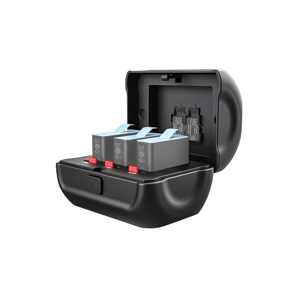 Ulanzi GP-8 vyztužený ochranný box určený pro skladování a přepravu tří baterií ADBAT-001 / AHDBT-901, používaných v akčních kamerách GoPro HERO9 a HERO10. Přesně tvarovaný vnitřek zajišťuje bezpečnost článků, chrání je před nárazy, poškozením, znečištěním a vlhkostí. Do krabičky se vejdou jak originální baterie, tak oblíbené náhrady. Každá přihrádka má spínač, pomocí kterého můžeme snadno označit, zda je baterie již vybitá nebo stále připravená k práci.