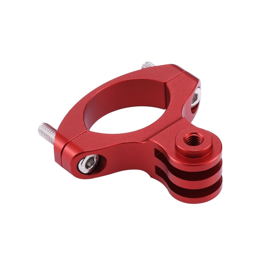 Jedná se o robustní hliníkový držák na řidítka kola, motorky, pro GoPro, Insta360, DJI a další akční kamery. Tento model je v červené barvě.