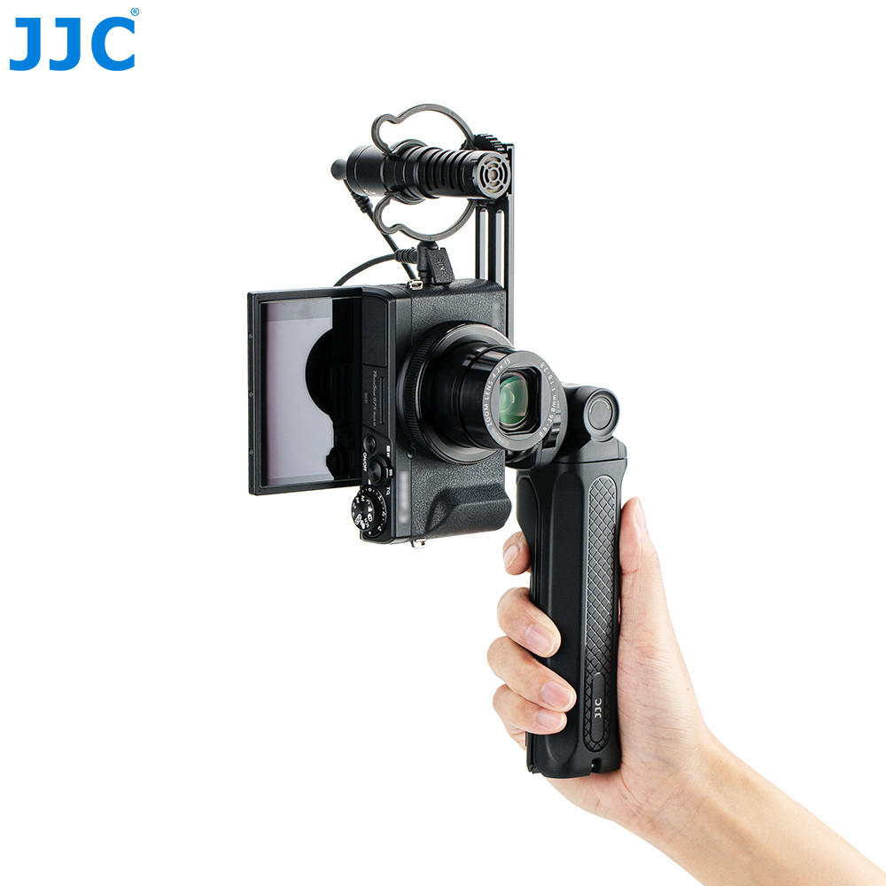 Držák JJC TP-U1 Shooting Grip je speciálně navržen pro natáčení vlogů, živé vysílání a selfie. Držák slouží jako držák pro natáčení i jako mini stativ. Díky plnému rozsahu otáčení o 360° a naklápěcí hlavě o 180° lze tento flexibilní a protiskluzový držák ovládat jednou rukou a pomáhá zlepšit stabilitu při natáčení. Vertikální natáčení umožňuje pohodlné nahrávání videa na platformu. Fotografování sebe sama s tímto držákem zkresluje obličej tak, že vypadá menší než při přímém použití fotoaparátu. Navíc lze držák snadno a bezpečně připevnit nebo sejmout otočením kolečka a protiskluzové podložky na držáku zvyšují přilnavost a zlepšují stabilitu.