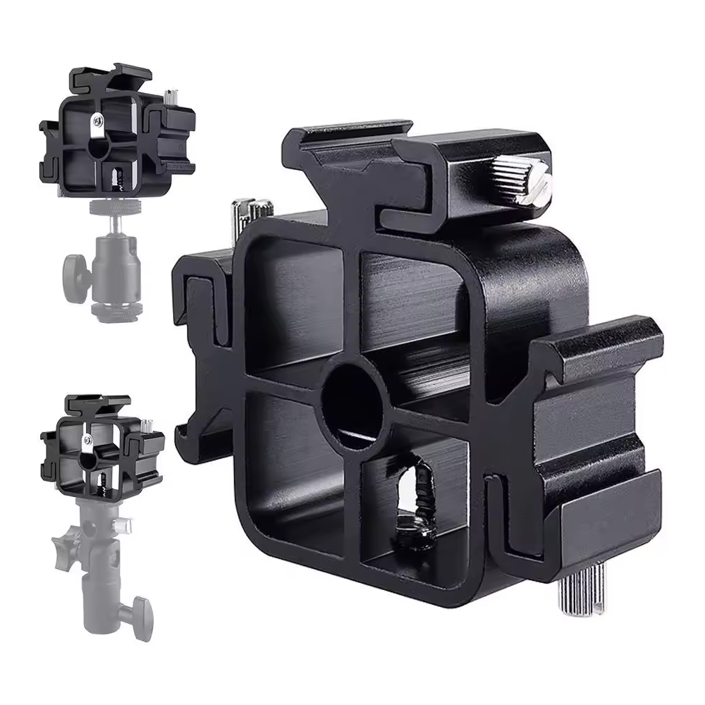 Objevte všestrannost a praktičnost s naším KPT-048 univerzálním 3 v 1 trijitým adaptérem, který je ideálním řešením pro profesionální i amatérské fotografy. Tento adaptér, známý také jako sáňky, je navržen tak, aby poskytoval maximální flexibilitu při použití více blesků a deštníku současně.