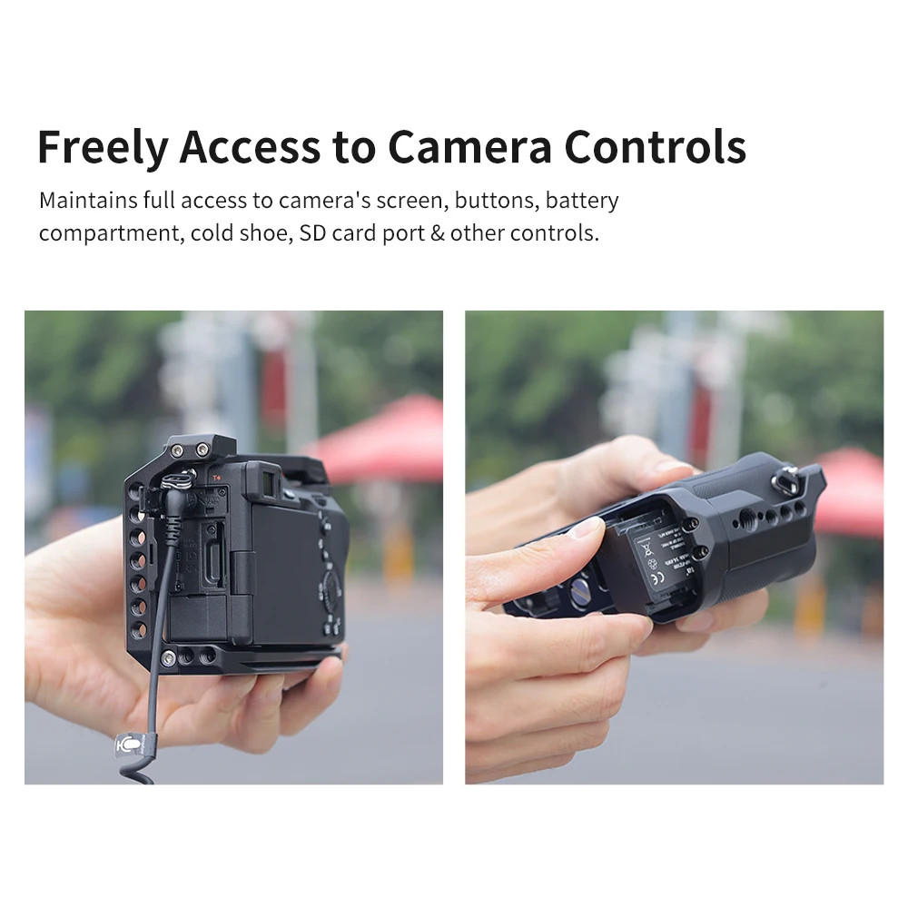 Odolná konstrukce. Multifunkční montážní body pro příslušenství. Tento model je určen pro fotoaparáty Sony A7C. Je vyroben z vysoce kvalitní hliníkové slitiny, která zajišťuje robustní a dlouhotrvající ochranu vašeho fotoaparátu.