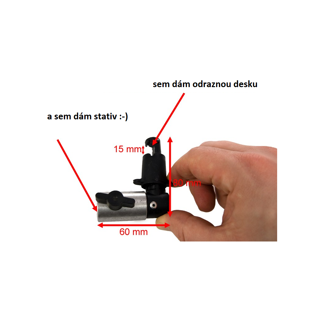 Multifunkční držák s možností upevnění odrazné desky nebo pozadí na stativ s 16mm studiovou špičkou .