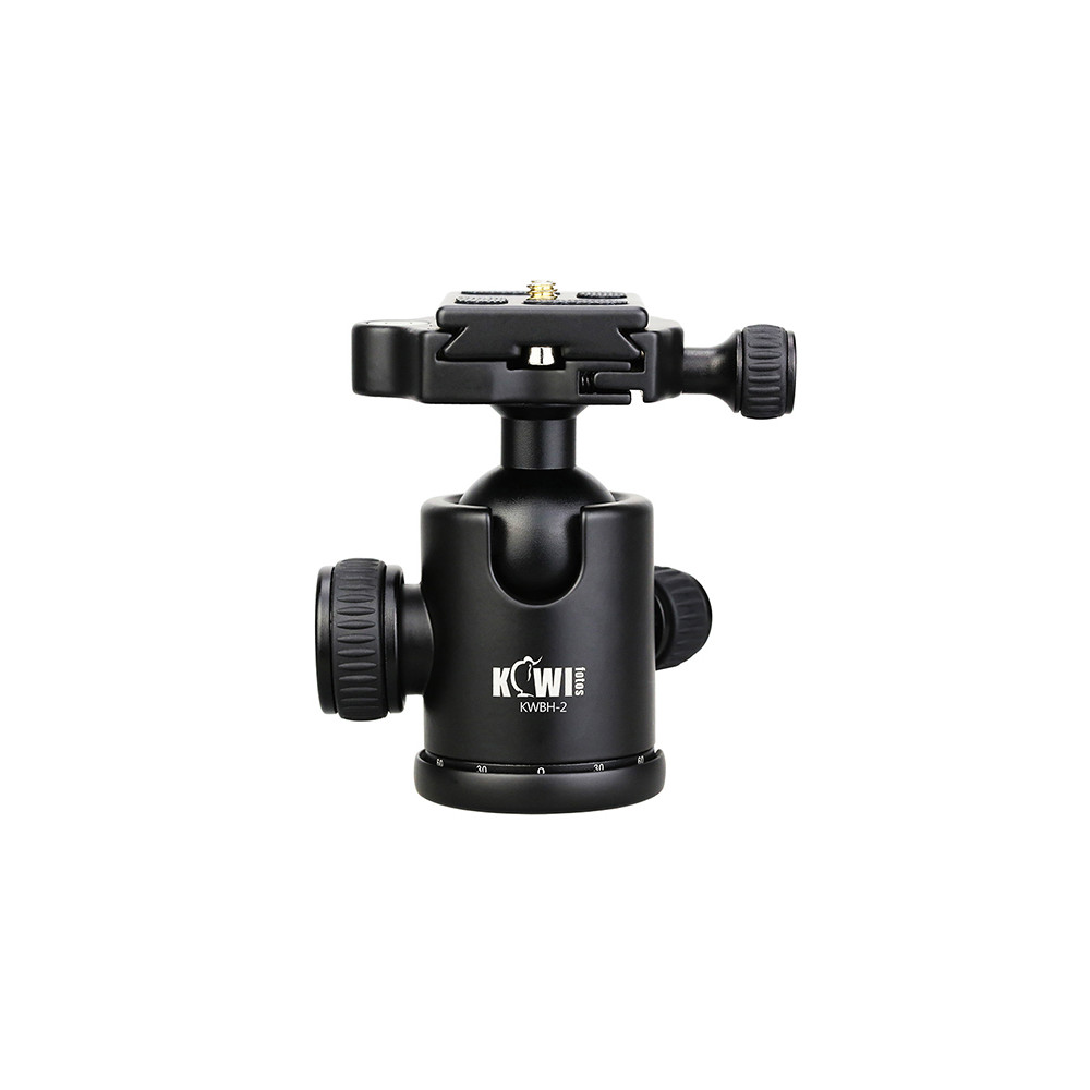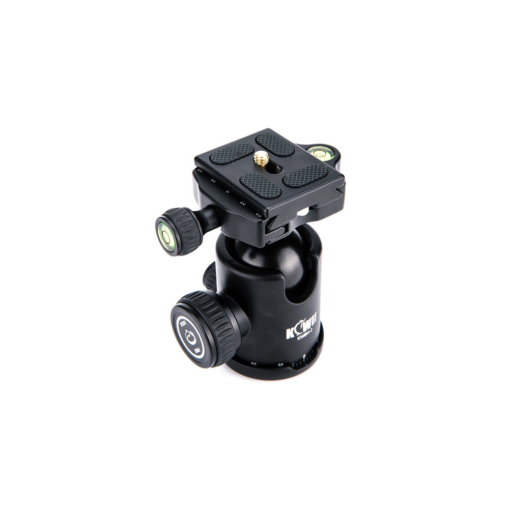 KWBH-2 je kompaktibilní se standardem Arca-Swiss - lze připevnit na univerzální stativy pomocí zdířky 3/8 " na spodní straně. Kulová hlava je vyrobena z prvotřídní hliníkové slitiny, je robustní a odolná. Panoramatická stupnice 360 ° na základně usnadňuje fotograf pořídí panoramatický snímek a vytvoří nádhernější díla. Vertikální a horizontální úrovně bublin jsou ideální pro přesné vyrovnání. Celokovový nastavitelný tlumicí knoflík umožňuje naklonění o 90 °. Hliníková rychloupínací deska s pogumovaným povrchem pomáhá kulové hlavě k připevnění na fotoaparáty nebo videokamery. Přiložené přepravní pouzdro je užitečné pro uložení a přepravu kulové hlavy.