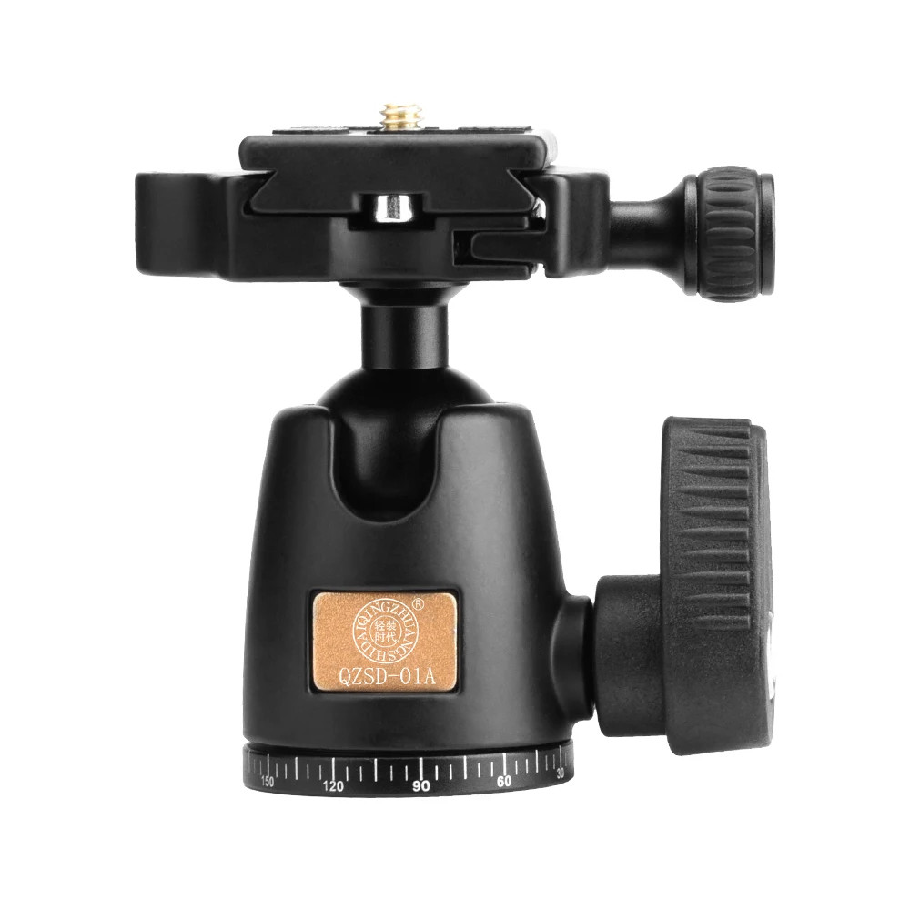 QZSD Q01A Kulová hlava pro stativy, monopody je nejen robustní a pevná, ale hlavně spolehlivá. Otáčení 360 stupňů, rychloupínací Deska, max. zatížení 5kg