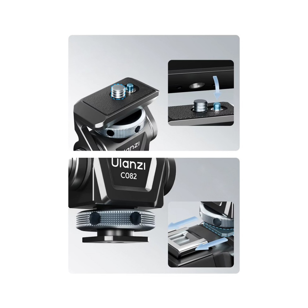 Ulanzi CO82 Mini je nenahraditelným pomocníkem pro každého, kdo potřebuje flexibilní, přesné a stabilní řešení pro svou foto-video výbavu. Její kompaktní design a robustní konstrukce z ní činí ideální volbu pro práci v terénu i v domácím studiu. S touto hlavou budete mít vždy jistotu, že vaše zařízení je bezpečně a stabilně umístěno, což vám umožní plně se soustředit na tvorbu skvělého obsahu.