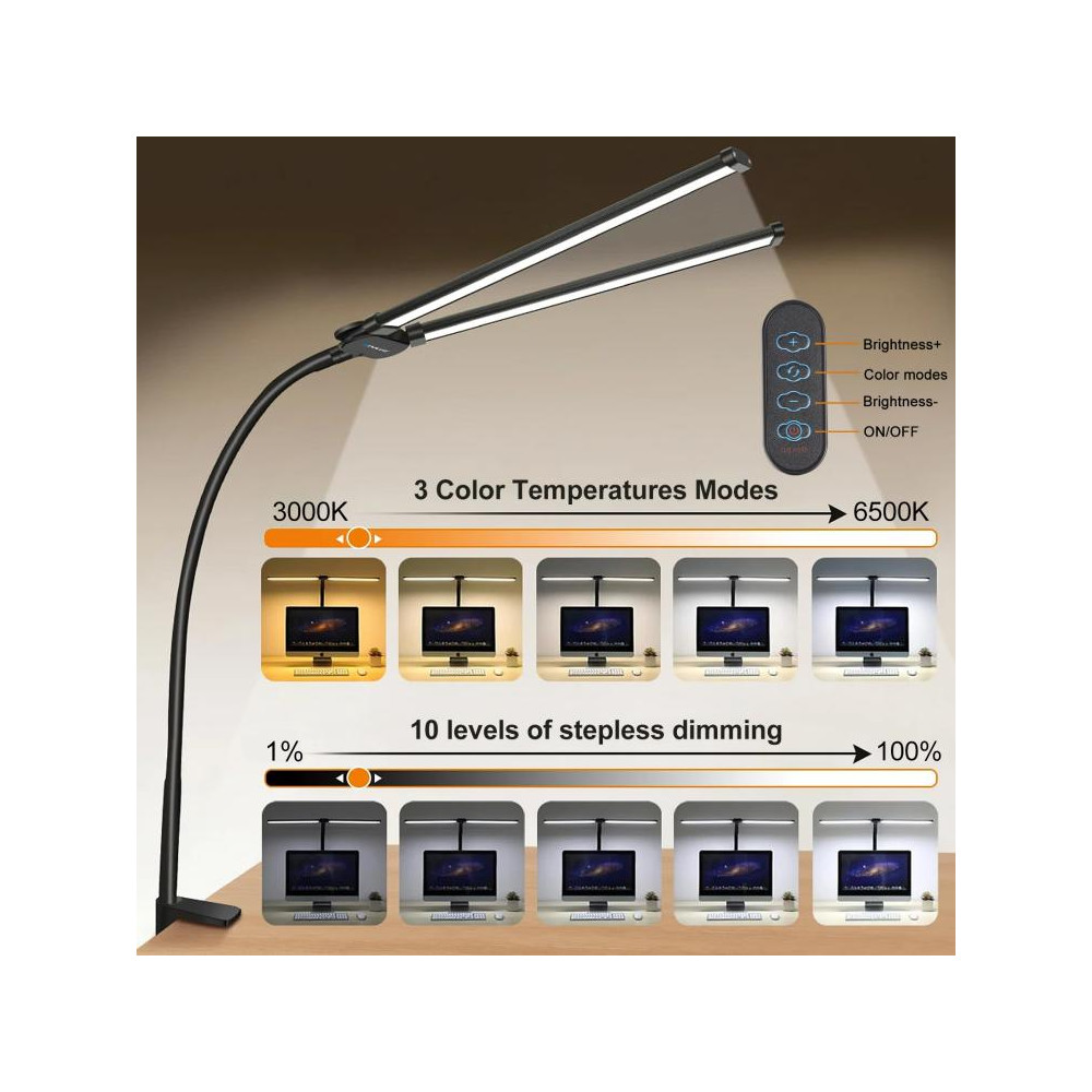 Uchycení klipem: Lampa je vybavena šroubovací svěrkou, která umožňuje její snadné připevnění k desce stolu o tloušťce až 6 cm (2,36 palců). Toto praktické řešení šetří místo na vaší pracovní ploše a zajišťuje, že lampa zůstane pevně na svém místě.