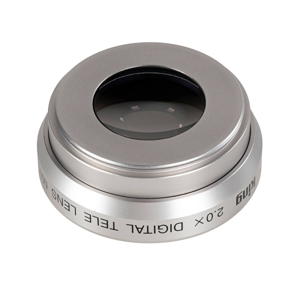 Tele King DRT-20 2.0x stříbrný . Našroubovaný na 52mm závit. Lze jej použít jak pro digitální fotoaparáty, tak pro videokamery.