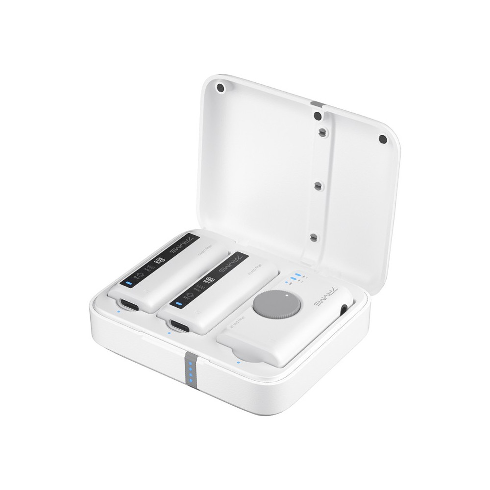 Přijímač i vysílač mají zabudované dobíjecí baterie, které poskytují až 7,5 hodiny nepřetržitého provozu. Zařízení lze ukládat a nabíjet současně v kompaktním pouzdře - dokovací stanici. Aktuální úroveň nabití bude informována LED diodami na krytu stanice. Součástí setu je také vyztužené pouzdro pro snadnou a bezpečnou přepravu celého setu a dvě čelní skla určená pro montáž na vysílače.