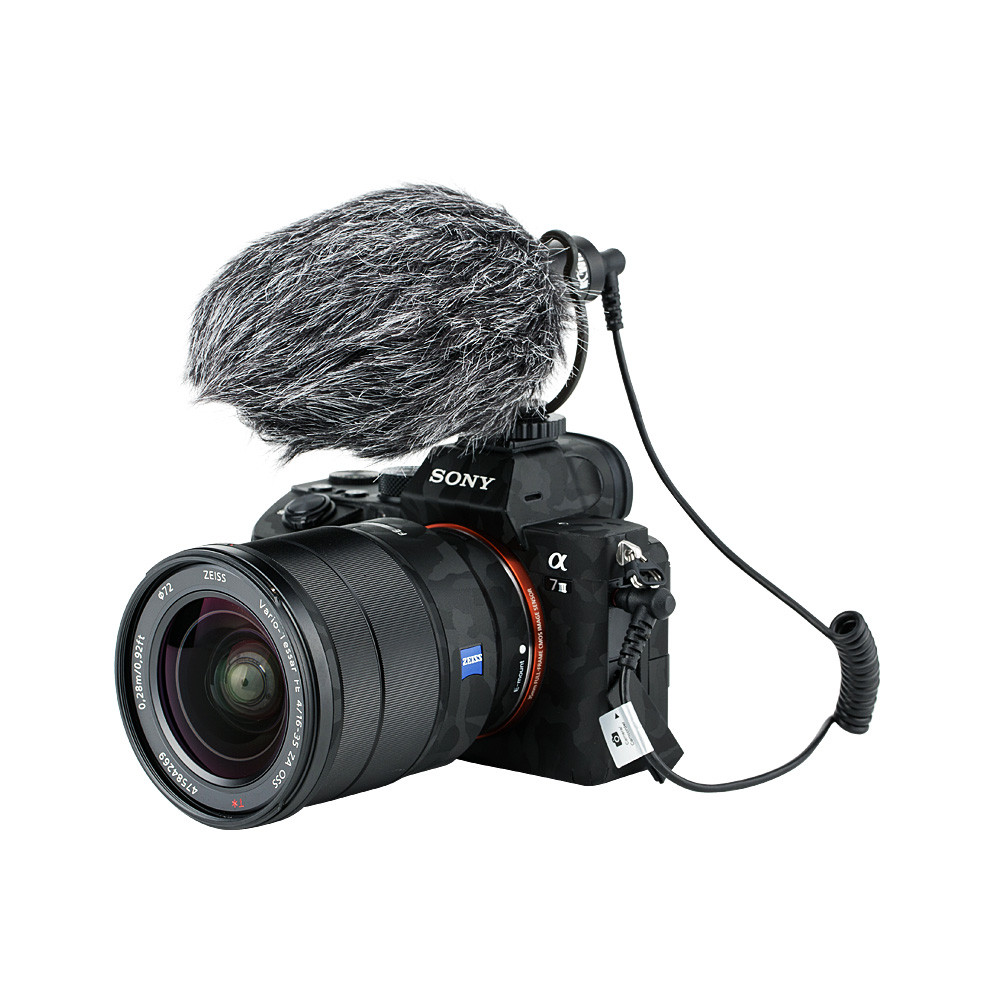 Malý brokovnicový mikrofon 7Ryms MinBo M2 určený pro fotoaparáty a videokamery s 3,5 mm TRS mini...