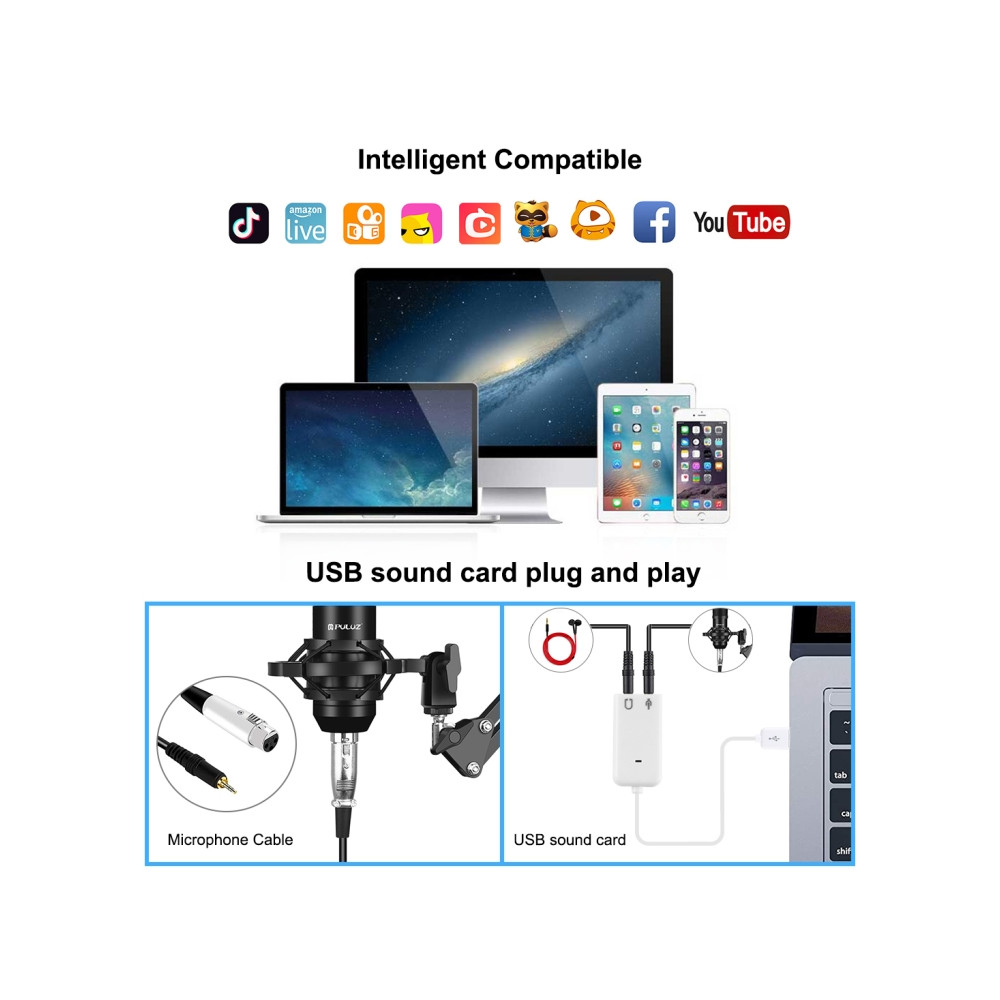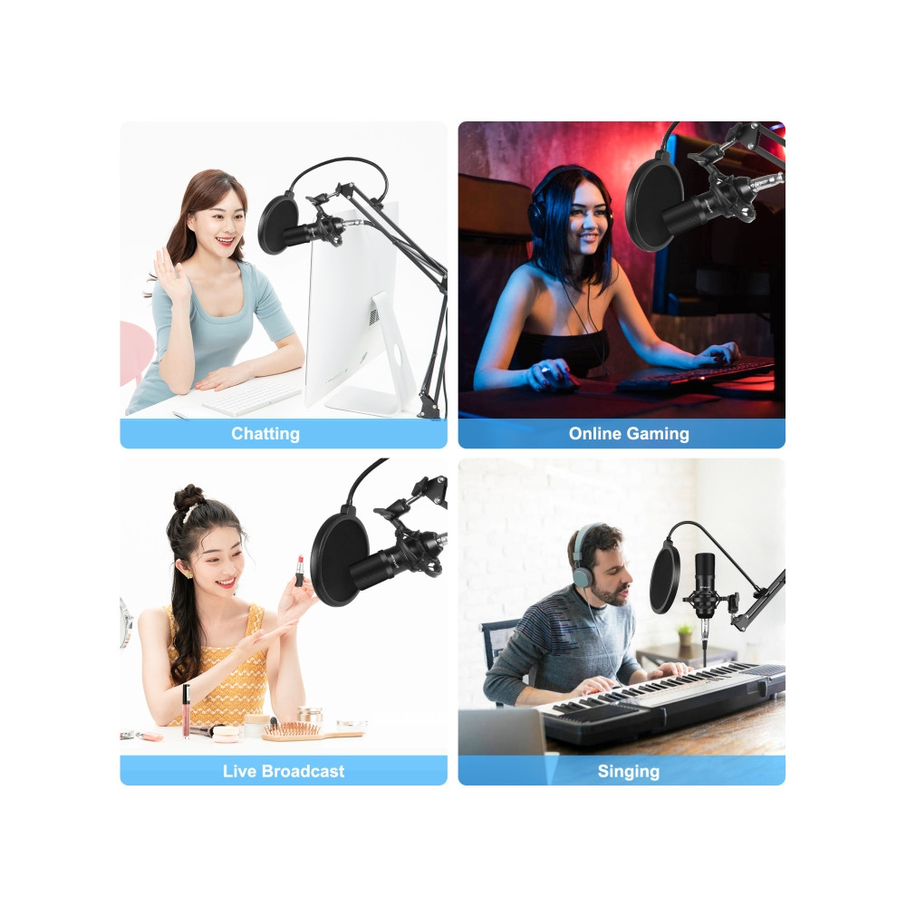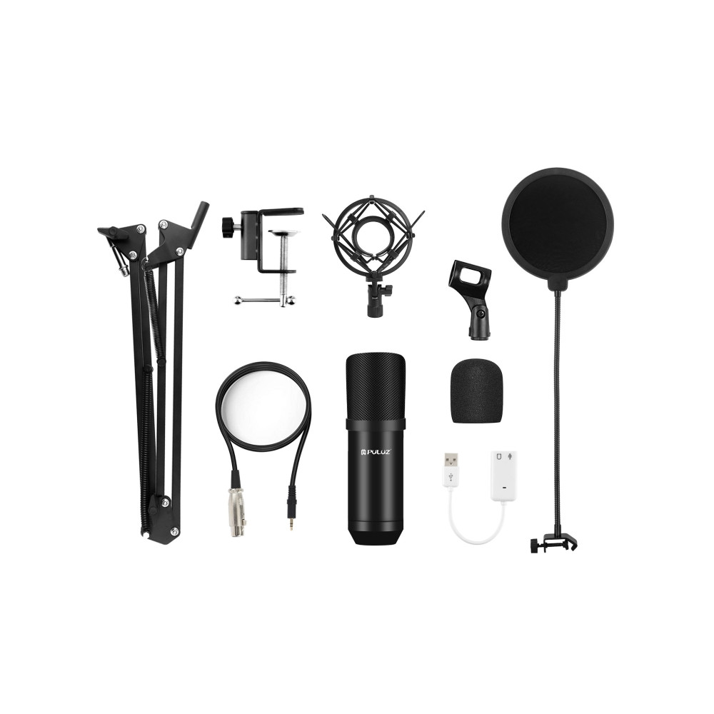1. Profesionální vybavení nahrávacího studia: Vybaveno tímto mikrofonem, držákem na tlumiče, pop filtrem, mikrofonem nastavitelným stojanem na zavěšení nůžek, pěnovým uzávěrem proti větru, napájecím kabelem, zvukovou kartou