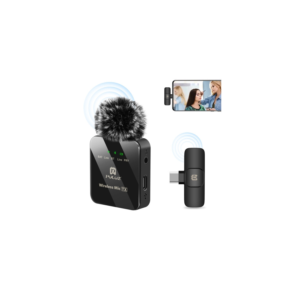 Bezdrátový klopový mikrofon PULUZ pro telefon typu C, přijímač typu C a duální mikrofony (černý)....
