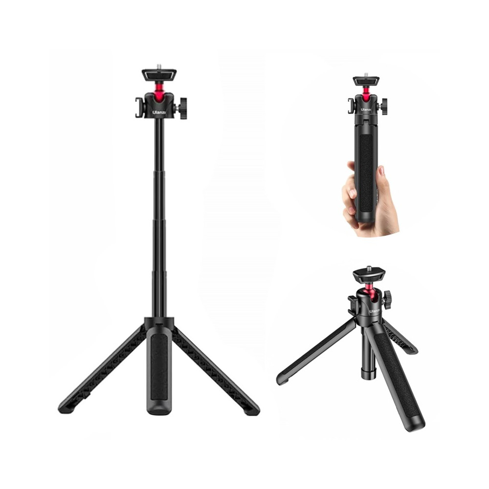 Stativ MT-16 2 v 1 ULANZI je kompaktní fotografický stativ, který je vybaven kulovou hlavou s 1/4'' závitem a přídavným držákem cold shoe. Do držáku můžeme umístit další příslušenství – malý externí mikrofon nebo LED lampu. Samotná hlava umožňuje volně manévrovat se zařízením a uzamknout jeho polohu motýlkovou svorkou.