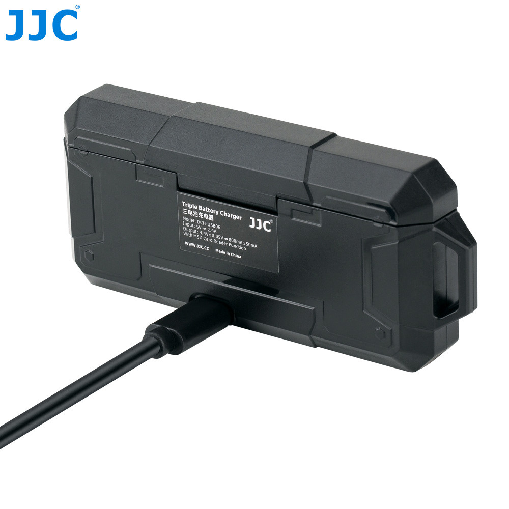 JJC TC-GP3 je trojitá nabíječka baterií s funkcí čtečky karet Micro SD / TF, která je speciálně navržena pro GoPro Hero 7, 6, 5 Black a 2018. Umožňuje nabíjet 3 baterie GoPro AABAT-001 současně a umožňuje vám současně přistupovat k vaší kartě Micro SD / TF. Napájení je zajištěno přes USB, takže baterii můžete nabíjet pomocí síťového adaptéru, notebooku, powerbanky nebo autonabíječky, což vám umožní dobít baterii kdekoli a kdykoli. Kontrolky na nabíječce zobrazují stav nabíjení baterie. Navíc, když se baterie začne přehřívat, nabíječka to zaznamená a okamžitě zastaví nabíjení. Nabíječka také automaticky detekuje, kdy jsou baterie plně nabité, a zastaví nabíjení, aby nedošlo k jejich poškození. Balení navíc obsahuje 1 m / 3,28' nabíjecí a datový kabel. Tato nabíječka umožňuje přístup k vaší kartě Micro SD / TF. Díky technologii USB 3.0 je zajištěna rychlá a stabilní přenosová rychlost dat až 5 Gbps. Plug and play design, nejsou vyžadovány žádné ovladače. Nabíječka je také vybavena LED kontrolkou, která zobrazuje stav karty. Celkově se tato nabíječka stane dobrým partnerem pro prodloužení doby fotografování a přenos dat.