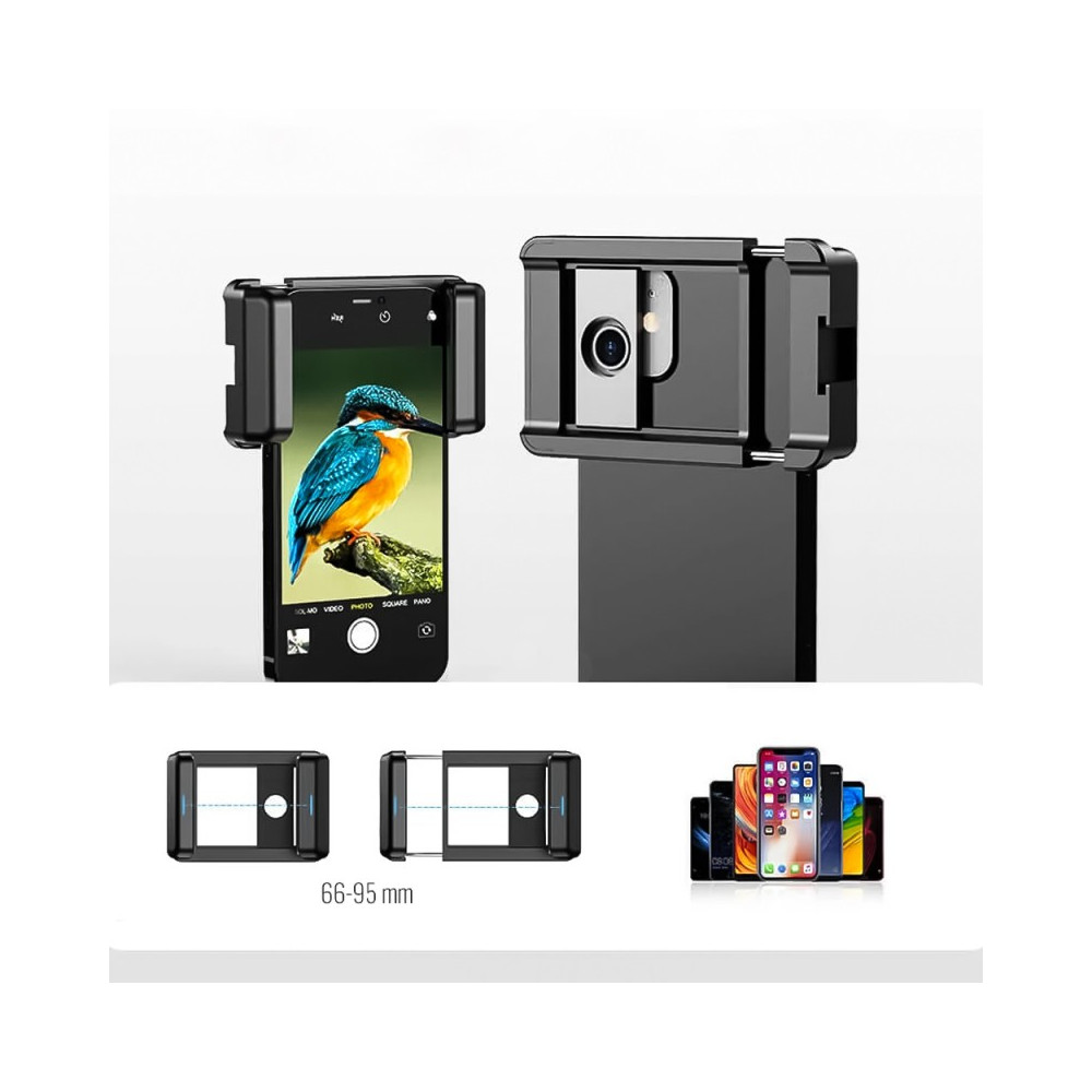Tento teleobjektiv je vybaven univerzálním montážním držákem, který zajišťuje bezpečné připevnění k většině chytrých telefonů. Oční pohár z měkkého silikonu zajišťuje pohodlí při používání a blokuje nežádoucí světlo, což výrazně zlepšuje kvalitu obrazu.