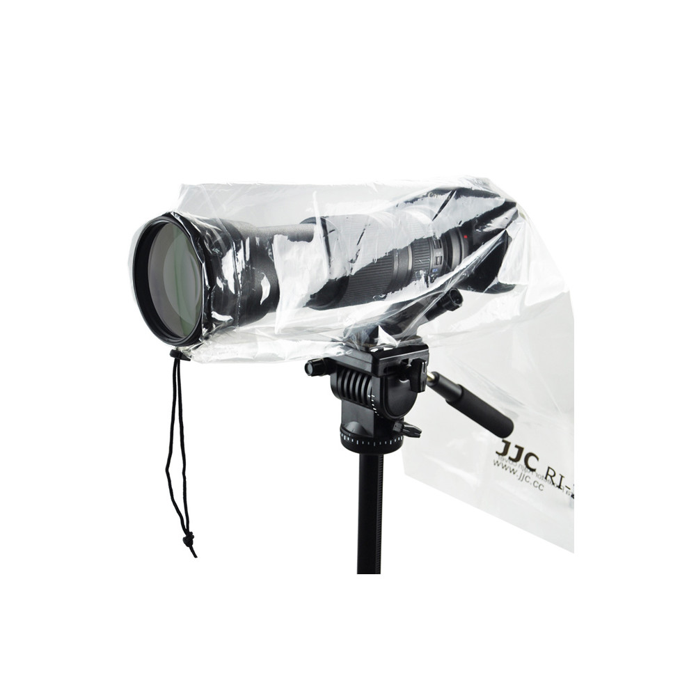 Kryt proti dešti na fotoaparát JJC RI-5 je navržen tak, aby účinně chránil fotoaparát před deštěm, prachem a blátem při fotografování v deštivých dnech. Kryt je vhodný pro digitální zrcadlovky s objektivem do velikosti 18" (45 cm). Je vyroben z materiálu PE a je zcela průhledný, což vám umožní úplný přístup k ovládacím prvkům a hledáčku digitální zrcadlovky. Navíc se kryt proti dešti snadno upevní na fotoaparát. Stačí řádně zatáhnout za stahovací šňůrku obalu na objektiv a ten se těsně přizpůsobí vašemu objektivu. Umožňuje také připevnit fotoaparát na stativ. S nasazeným krytem můžete stále používat sluneční clonu objektivu. Kromě toho je kryt lehký a snadno se přenáší. S pláštěnkou na fotoaparát JJC RI-5 se budete při fotografování v deštivých dnech cítit uvolněně.