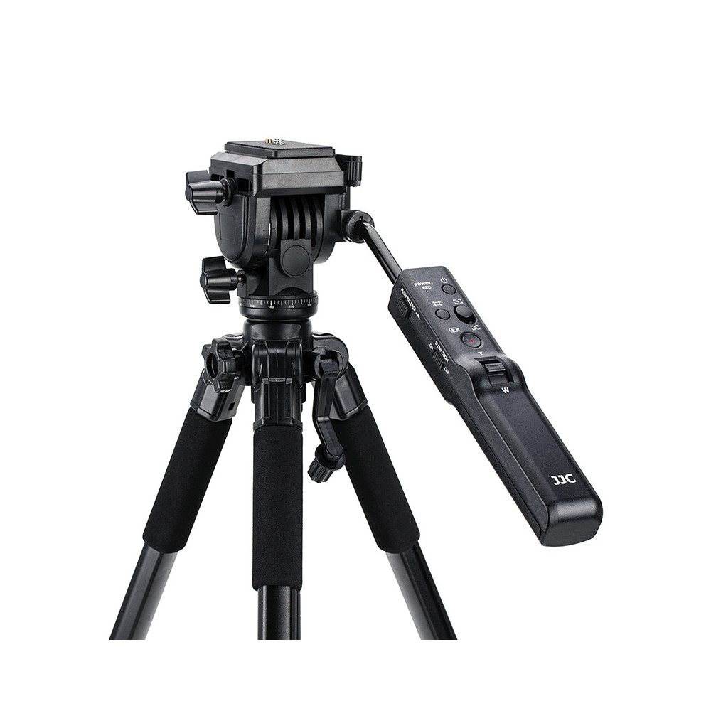 Dálkově ovládaný stativ JJC TP-F2 nahrazuje model Sony VCT-VPR1, který je speciálně navržen pro fotoaparáty nebo videokamery Sony s multiterminálem. Je vybaven systémem rychloupínací montážní desky a připojuje se k fotoaparátu, objektivu nebo jiným zařízením pomocí šroubu 1/4"-20, což umožňuje rychlé připojení a odpojení. Odnímatelný ovladač pan bar je multifunkční dálkové ovládání a má základní funkce pro nahrávání: zapnutí/vypnutí, nahrávání videa/fotografií, zoomování, pomalé zoomování, funkci zamykání a zobrazení mřížky. Tento ovladač pan bar nevyžaduje baterie, je napájen z fotoaparátu nebo videokamery. Středový sloup se zvedá nebo spouští otáčením ruční kliky, což vám umožňuje snadno doladit výšku středového sloupu. Pro zlepšení stability během provozu je stativ vybaven středovým rozpěrným prvkem s aretačním kroužkem, který umožňuje rychlé nastavení a zajištění úhlu nohou. Nohy stativu se rychle vysouvají a nastavují díky flipovým zámkům, které zajišťují a odjišťují jednotlivé části nohou. Stativ je navíc vybaven vodováhou a značkami pro otáčení. Stručně řečeno, JJC TP-F2 se rychle nastavuje, snadno ovládá, je odolný a má vynikající stabilitu, takže je ideálním partnerem při fotografování.