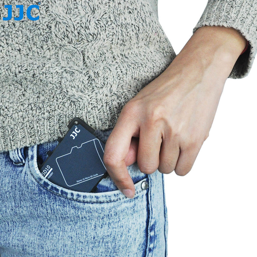 Držáky paměťových karet JJC řady MCH mají několik samostatných slotů pro uložení paměťových karet, které chrání paměťové karty před prachem a ztrátou. Držák je vyroben z materiálu ABS, je lehký a přenosný. Díky kompaktnímu designu má držák velikost kreditní karty. Navíc je opatřen otvorem, takže držák můžete připevnit na klíčenku.
