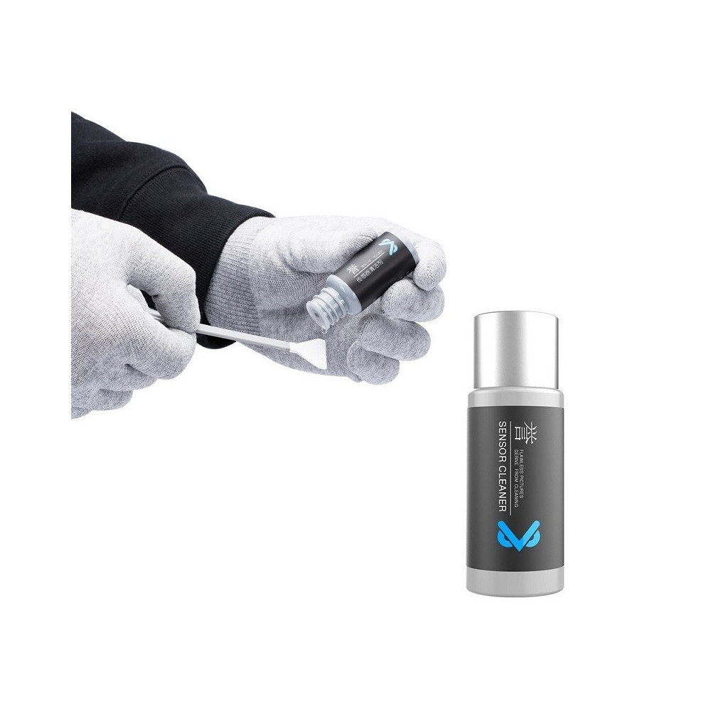 Čisticí kapalina obsažená v sadě neobsahuje alkohol, takže je pro senzor zcela bezpečná. Poradí si i s mastnými nečistotami, aniž by zanechával šmouhy nebo skvrny. Lahvička obsahuje dávkovač, který usnadňuje nanesení správného množství přípravku a chrání zbývající obsah před větráním.