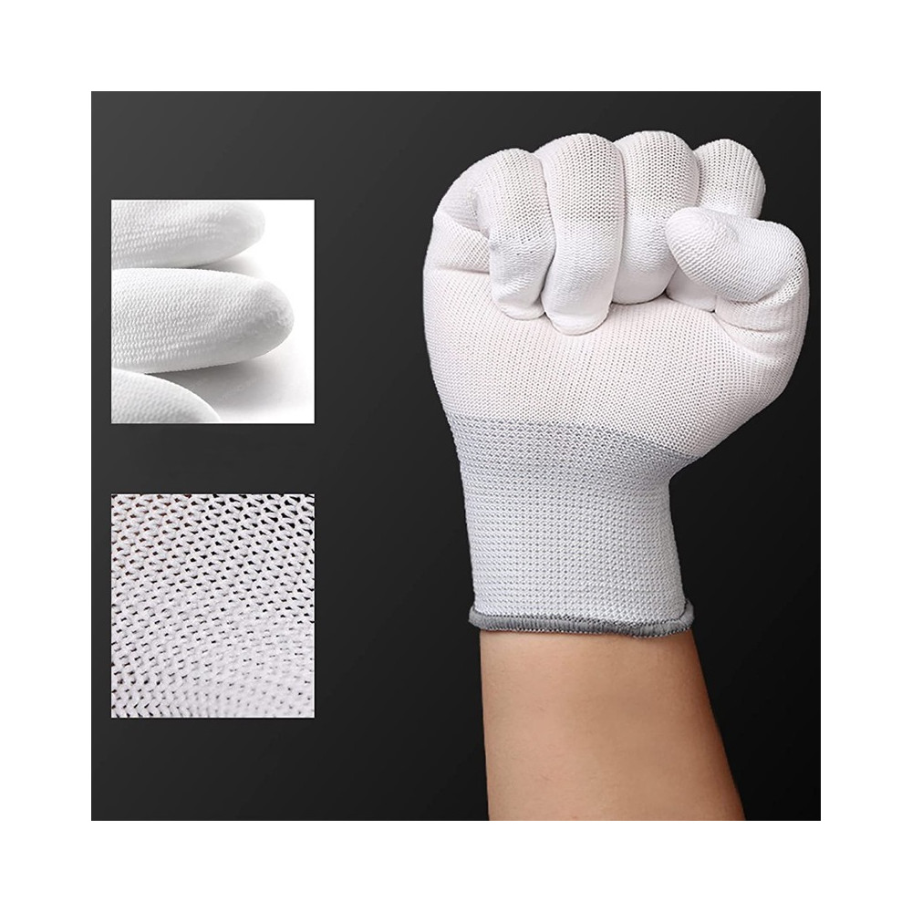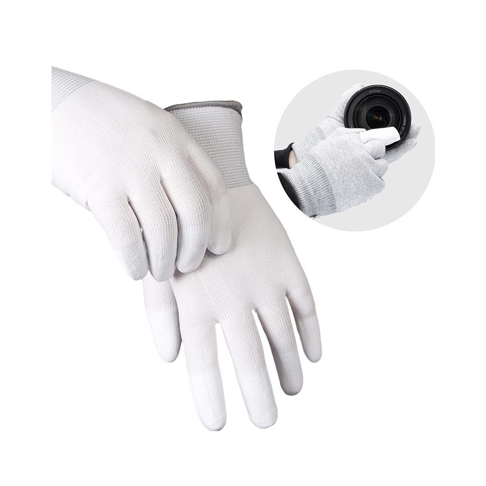 Antistatické rukavice VSGO DDG-1 vyrobené z pružného a odolného nylonu v technologii čistých prostor. Jsou užitečné nejen při péči a čištění fotoaparátů, objektivů nebo filtrů, ale také při opravách, které vyžadují nejvyšší přesnost. Konečky prstů jsou pokryty vrstvou polyuteranu, díky čemuž se velmi pohodlně uchopí i malé nebo kluzké prvky. Nerozpadají se a nezanechávají vlákna. Dobrá cirkulace vzduchu zajišťuje pohodlnou práci i po delší dobu. Velikost L