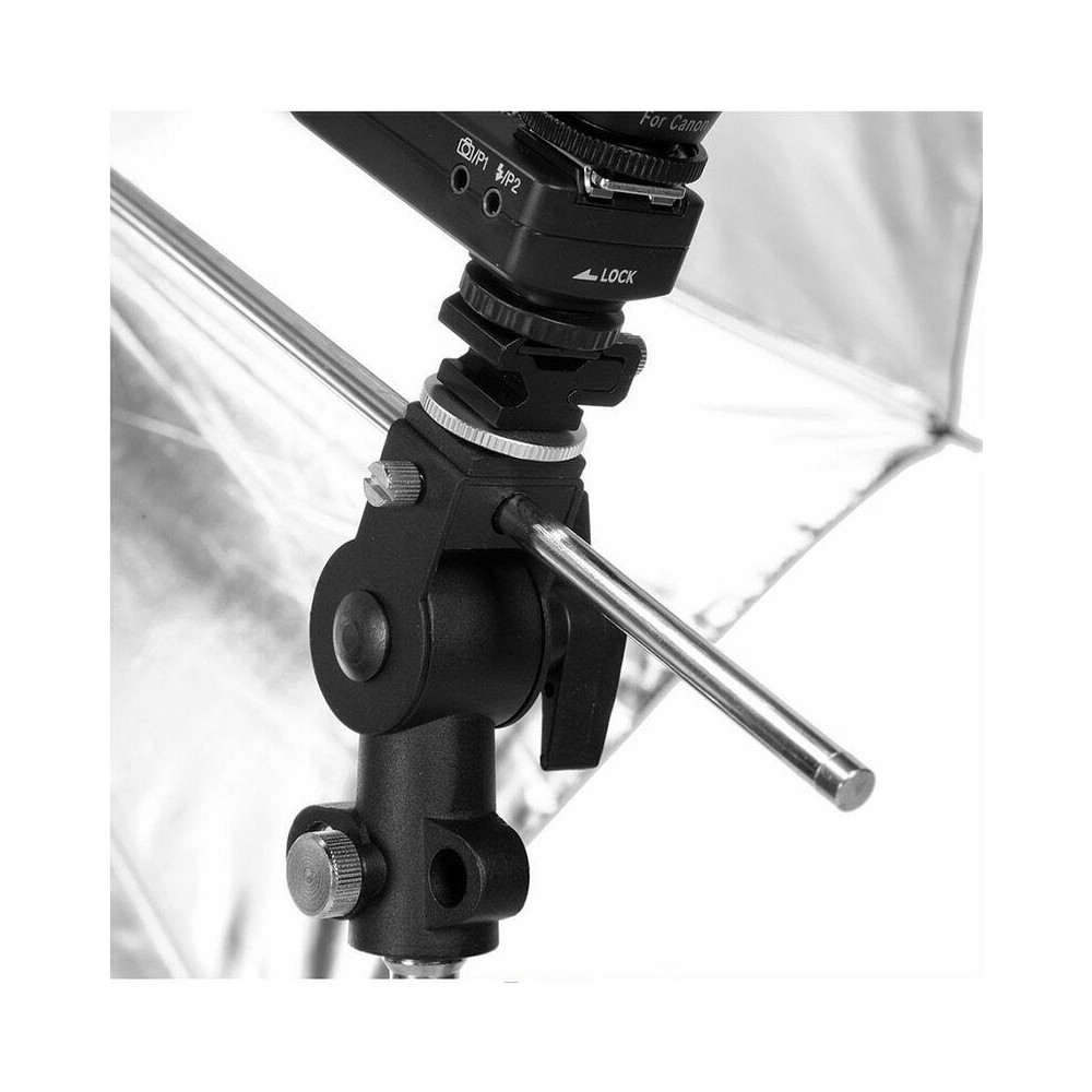 Variabilní úhly: Můžete také nastavit deštník a blesk v různých úhlech, což umožňuje kreativní osvětlení a stínování. Vhodné pro všechny blesky Hot-Shoe, spouštěcí vysílače nebo slave.