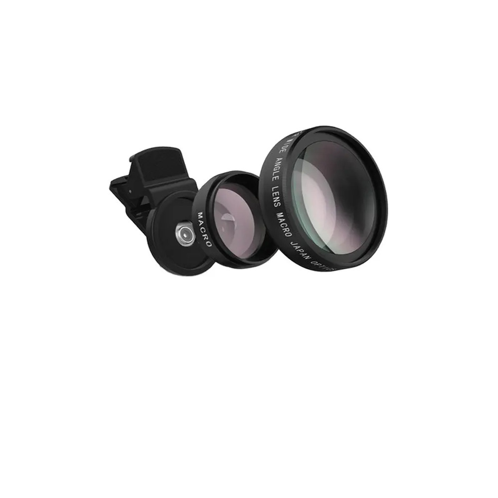 Objektiv 37 mm, kovový pro mobilní telefony, jednoduché uchycení na telefon pomocí klipu. V balení dva druhy objektivů širokoúhlí a makro. Vhodné pro většinu mobilních telefonů.
