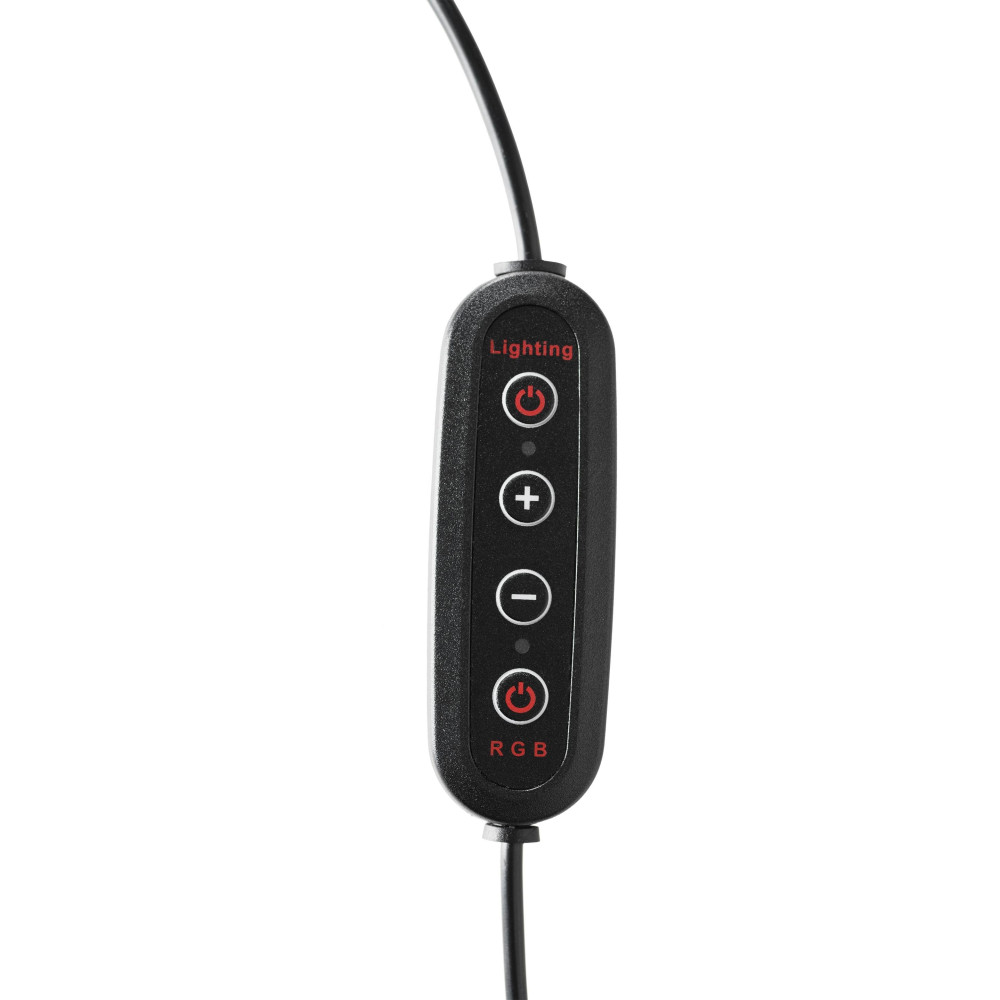 Osvětlení Quadralite LED kulaté RGB světlo má vestavěný difuzér, díky kterému je materiál, který vytvoříte, přirozeně osvětlen (bez tvrdých stínů). Teplotu barev a světelný výkon lze nastavit pomocí dálkového ovladače nebo ovladače zabudovaného do napájecího kabelu. Pro kreativnější efekty můžete použít kreativní režimy, jako je barevná vlna nebo konkrétní barvy z prostoru RGB (jako je tyrkysová, červená, purpurová, zelená a další).