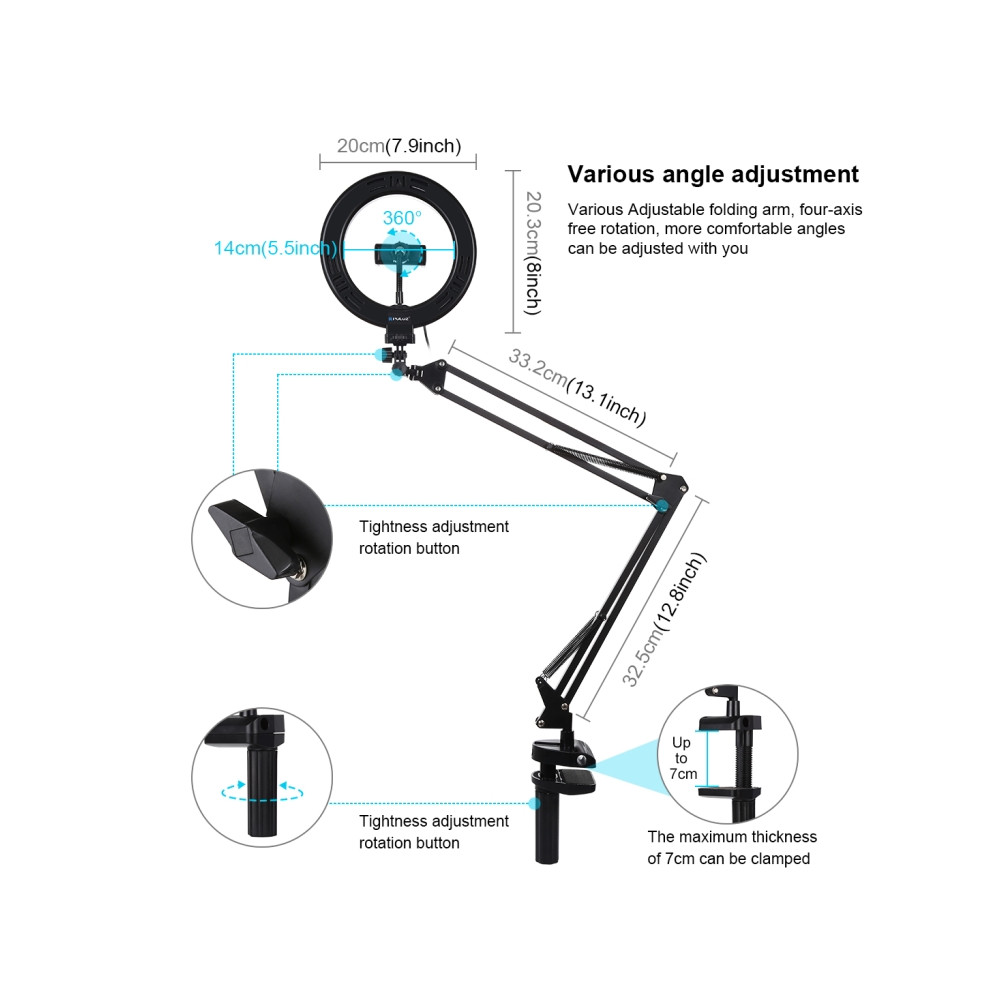 Hledáte dokonalé osvětlení pro vaše vloggingové projekty, líčení nebo produktovou fotografii? Představujeme vám PULUZ 7,9 palce 20cm kruhové LED světlo s ohebným ramenem s úchytem na stůl, které je navrženo tak, aby splnilo všechny vaše potřeby v oblasti osvětlení a přineslo vám profesionální výsledky.