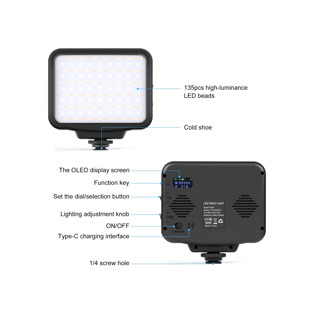 PULUZ Pocket 104 LED 1800LM Profesionální vlogovací fotografické video & foto studio světlo s...