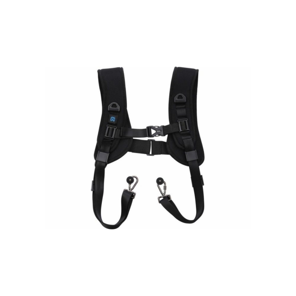Tyto popruhy jsou vyrobeny z vysoce kvalitního nylonu a jsou mimořádně odolné. Umožňují nosit dva fotoaparáty najednou. Fotoaparáty můžete snadno a rychle oddělit a používat vždy jen ten, který právě potřebujete. Díky použití vysoce kvalitní pěny jsou popruhy mimořádně komfortní a pohodlně se nosí i po několika hodinovém užívání. Rovnoměrně rozkládají hmotnost fotoaparátu, aniž by zatěžovaly vaši páteř.