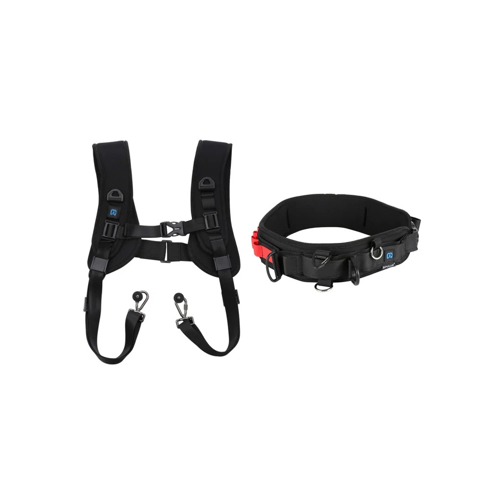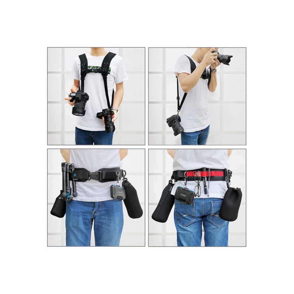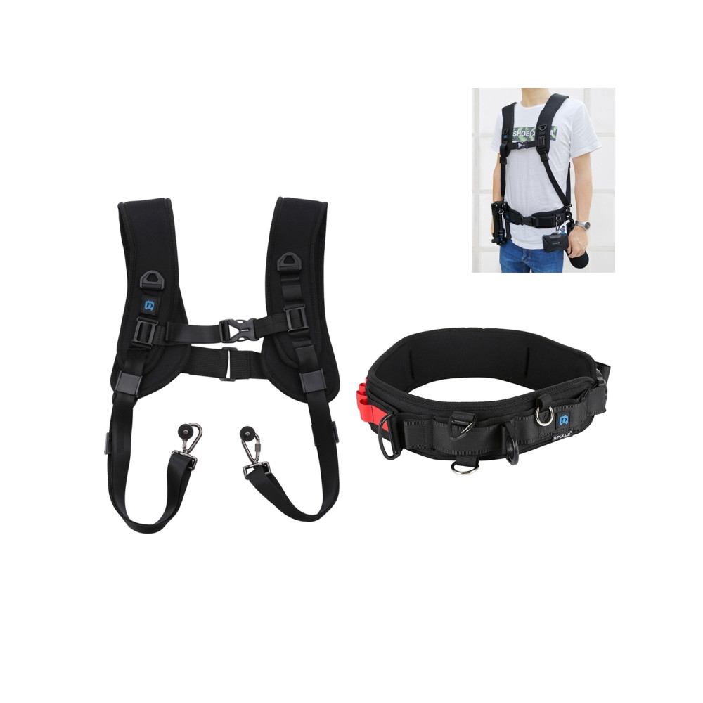PULUZ 2 v 1 multifunkční balíček pásek popruh + sady popruhů na dvojitá ramena s háčkem pro zrcadlovky DSLR Popruh v pase.