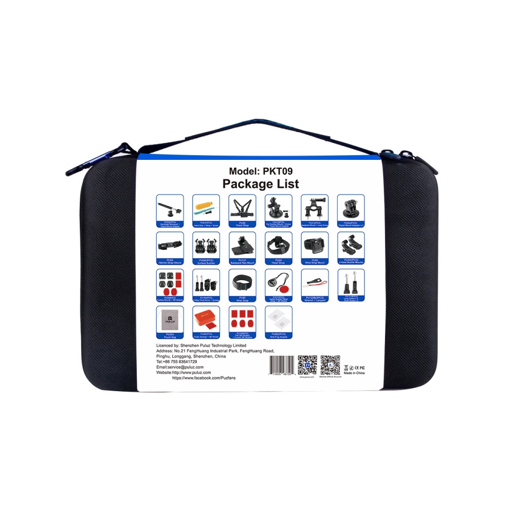 PULUZ 45 v 1 příslušenství Ultimate Combo Kits s pouzdrem EVA (hrudní popruh + držák s přísavkou...