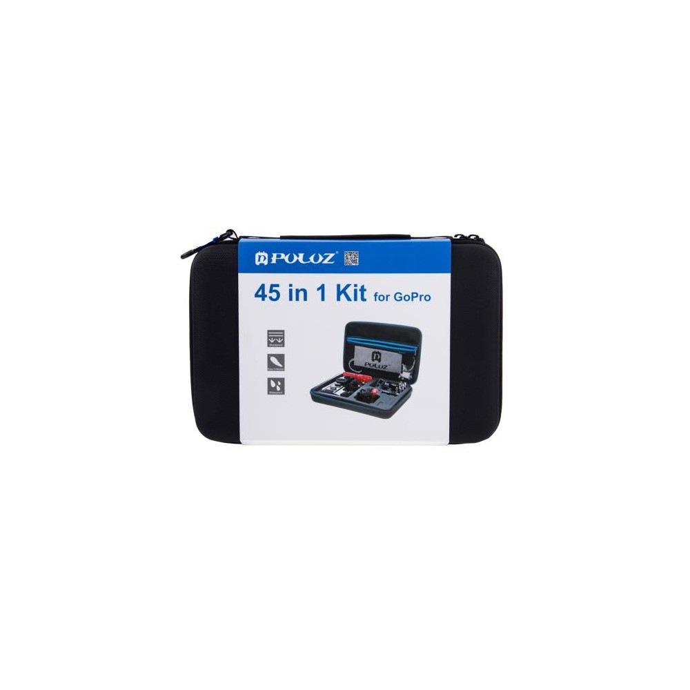 PULUZ 45 v 1 příslušenství Ultimate Combo Kits s pouzdrem EVA (hrudní popruh + držák s přísavkou + 3cestné otočné rameno + spona J-Hook + popruh na zápěstí + popruh na helmu + držáky na povrch + adaptér na stativ + úložná taška + držák na řídítka + klíč) pro GoPro NEW HERO /HERO6 /5 /5 Session /4 Session /4 /3+ /3 /2 /1, Xiaoyi a další akční kamery