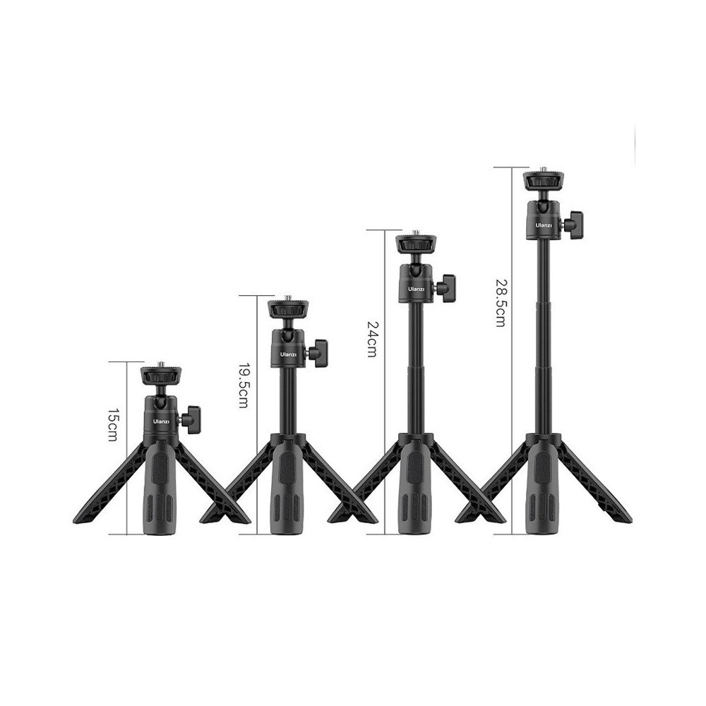 Mini stativ ULANZI M12 je praktický stativ s kulovou hlavou a výsuvným výložníkem. Zakončeno závitem 1/4''. Určeno pro malé fotoaparáty, akční kamery a smartphony. Součástí je držák pro kamery GoPro. Celková délka – 28,5 cm.